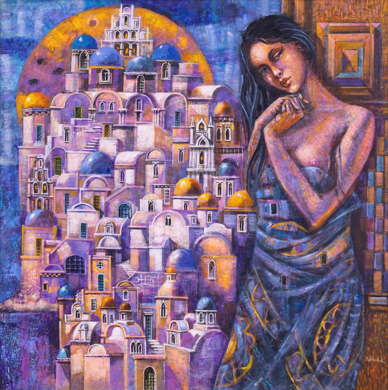 olej, płótno, 70 x 70 cm (w oprawie 102 x 102 cm),sygnowany p.d.: 'M. Urbaniak' oraz opisany na odwrocie: 'GRECKIE | WAKACJE | Maciej Urbaniak | 2024'