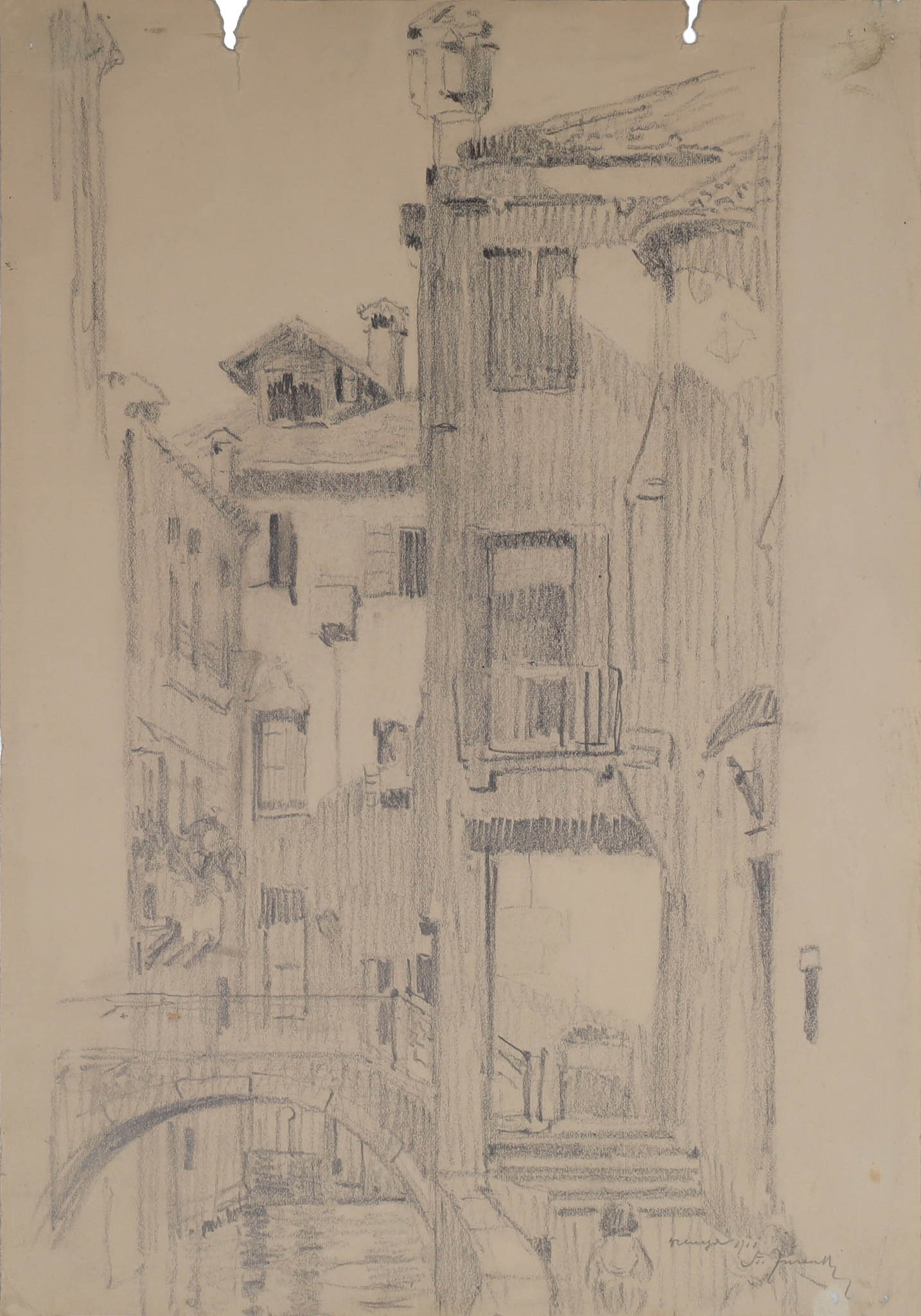 ołówek, papier, 34 x 24 cm;sygn. p.d.: St. Żurawski / Wenecja 1911Stan zachowania: ślady po szpilkach, ubytki papaieru.