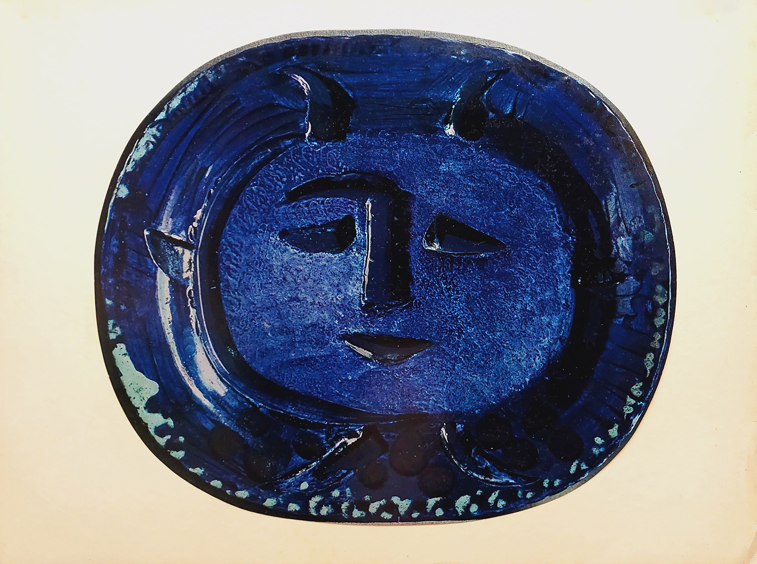 przedstawia reprodukcję ceramicznego talerza ''The Blue Face'' (Niebieska twarz) (często pojawiają się pod tytułem ''Głowa Fauna'' – ze względu na charakterystyczne rogi i spiczaste uszy) autorstwa Pabla Picassa;