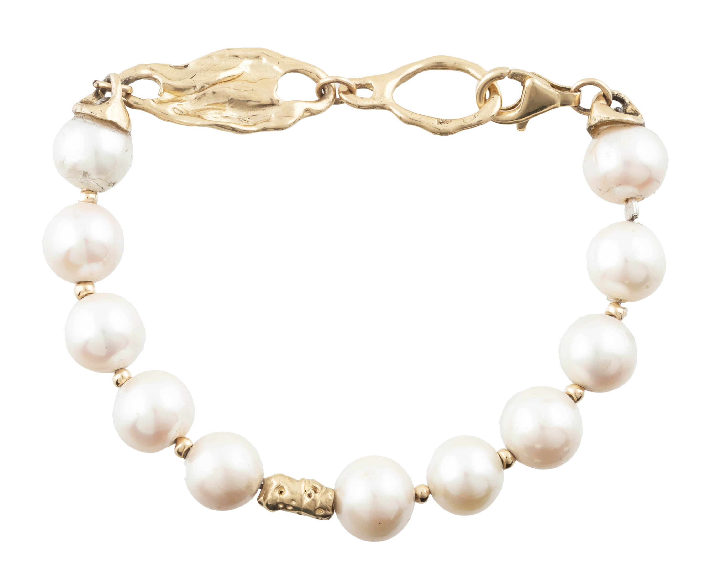 złoto, pr. ok. 0,585, m. 21,83 g, 11 szt. pereł hodowanych słodkowodnych śr. ok. 9,4 - 11,30 mm