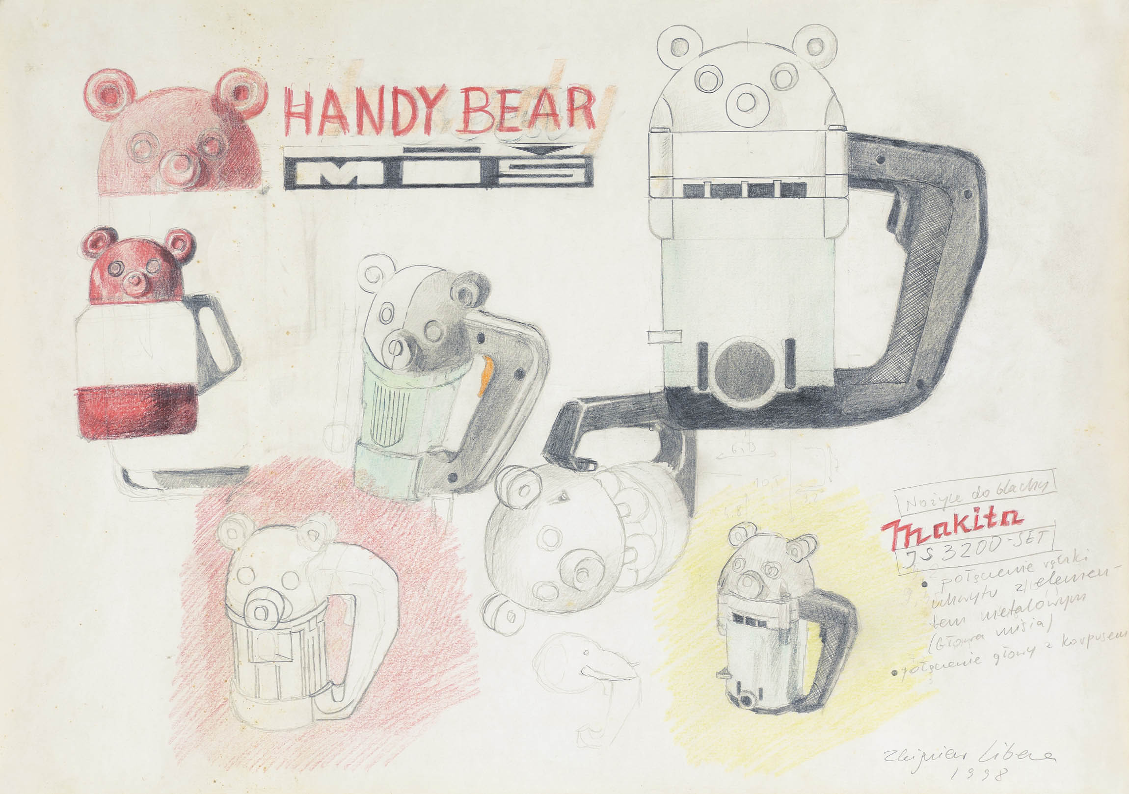 Rysunek Handy Bear można łączyć z cyklami Mutacje narzędzi i Projekty zabawek (oba z 1998), zwłaszcza z tym drugim, w którym artysta zderza miękkie i „niewinne“ kształty dziecięcych zabawek (grzechotka, gryzak, miś) z ich twardym, technicznym oprzyrządowaniem.