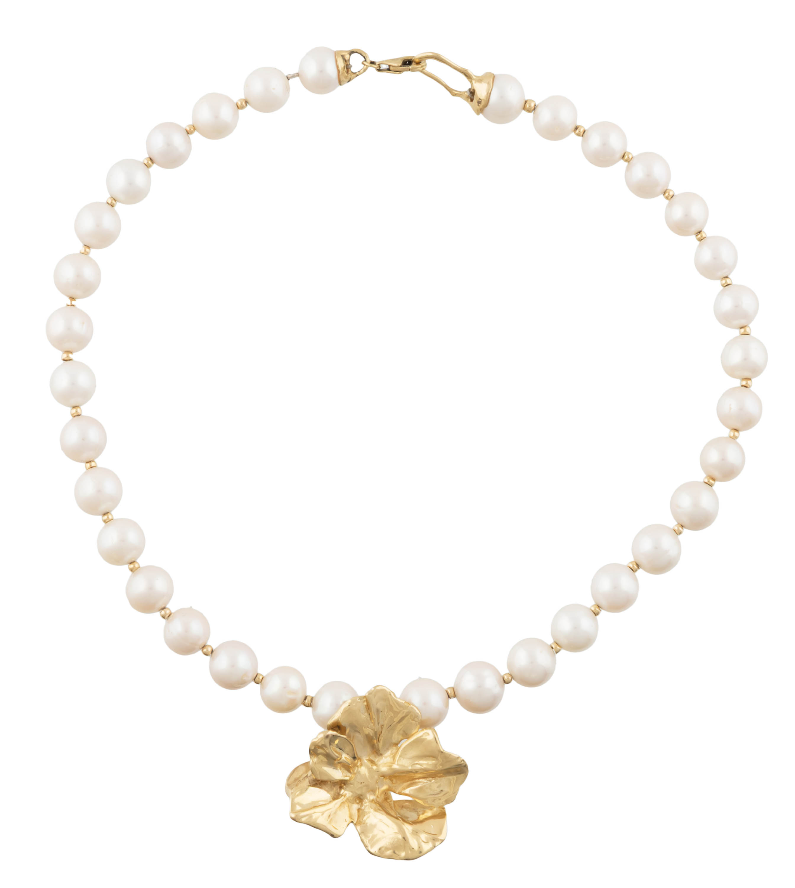 złoto, pr. ok. 0,585, m. 68,07 g, 35 szt. pereł hodowanych słodkowodnych śr. ok. 9,4 - 11,3 mm,sygn. imiennikiem jubilerskim