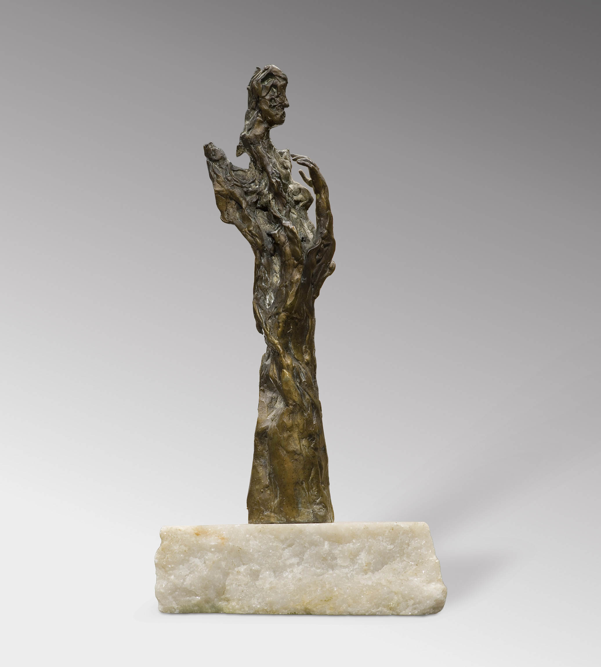 sygn. dłg. na nalepce przytwierdzonej na spodzie podstawy: BOŻENNA | BISKUPSKA | FIGURA | 1990 | brąz 25 cm