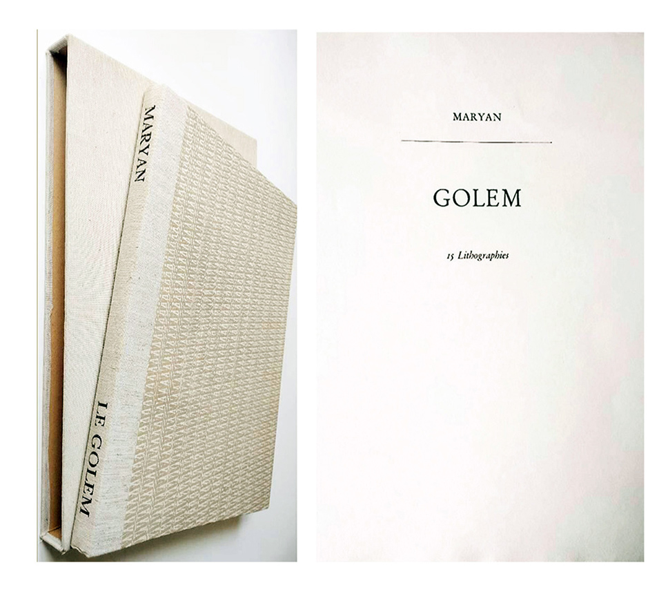 W tej serii Maryan (Pincas Burstein) gra Golema zranionego przez historię. W litografii nr 1 artysta nadał stworzeniu przestraszone rysy twarzy i łzawe spojrzenie; jego półotwarte usta nie są w stanie krzyczeć. Jego Golem wydaje się skamieniały, jakby powrócił do pierwotnej bezwładności, zamrożony w swojej niemocy. Noszona przez niego Gwiazda Dawida utożsamia go ze społecznością żydowską, na zawsze naznaczoną wojną.