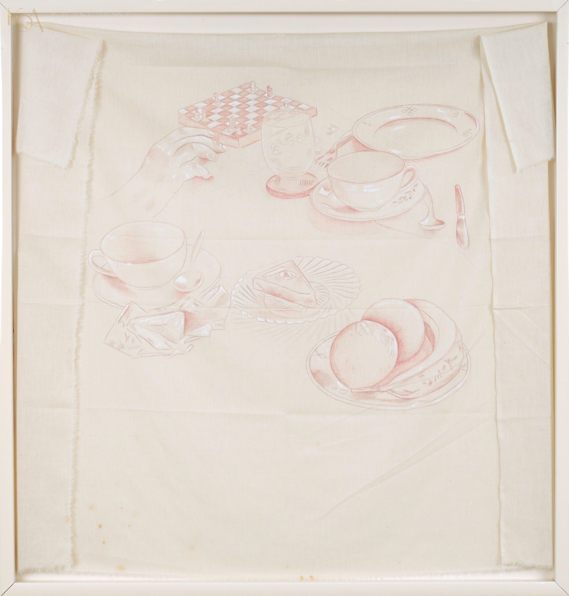 akryl, tusz, bawełna79 x 77,5 cm (w świetle); 87,5 x 83,5 cm (z oprawą)Na odwrocie metka z opisem obrazu.