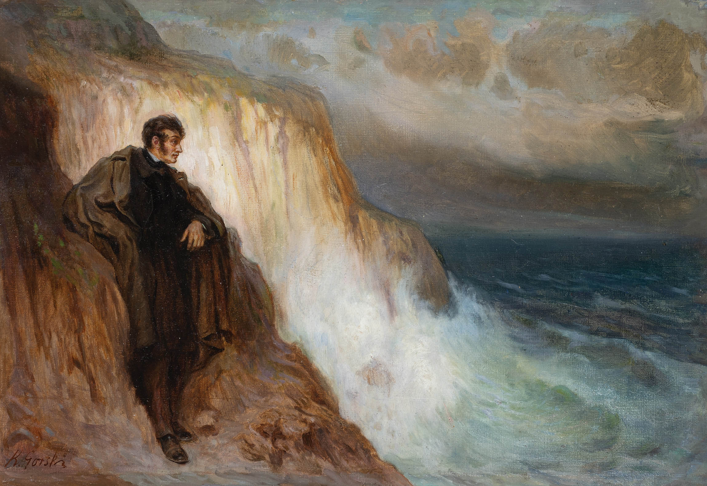 W przeciwieństwie do kanonicznej ikonografii XVIII sonetu krymskiego Ajudah (1825-26) Mickiewicza, autorstwa Walentego Wańkowicza, gdzie wieszcz wspiera się o skałę na szczycie góry, tutaj poeta został ukazany na urwistym, eksponowanym nawisie skalnym – bezpośrednio nad morzem. Choć analogiczne ujęcie odnajdziemy w kompozycji Stefana Popowskiego (opublikowanej w „Tygodniku Ilustrowanym“, 1899, nr 52), prawdopodobnym źródłem inspiracji Gorskiego były płótna Iwana Ajwazowskiego przedstawiające Puszkina nad brzegiem morza. Wpływ rosyjskiego marynisty jest zresztą czytelny również w sposobie modelowania samego pejzażu morskiego.