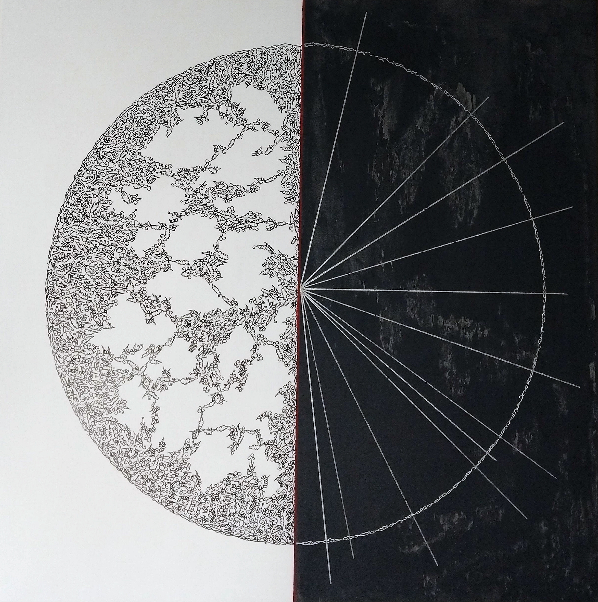 technika mieszana (akryl, marker olejowy), płótno, 100 x 100 cm,