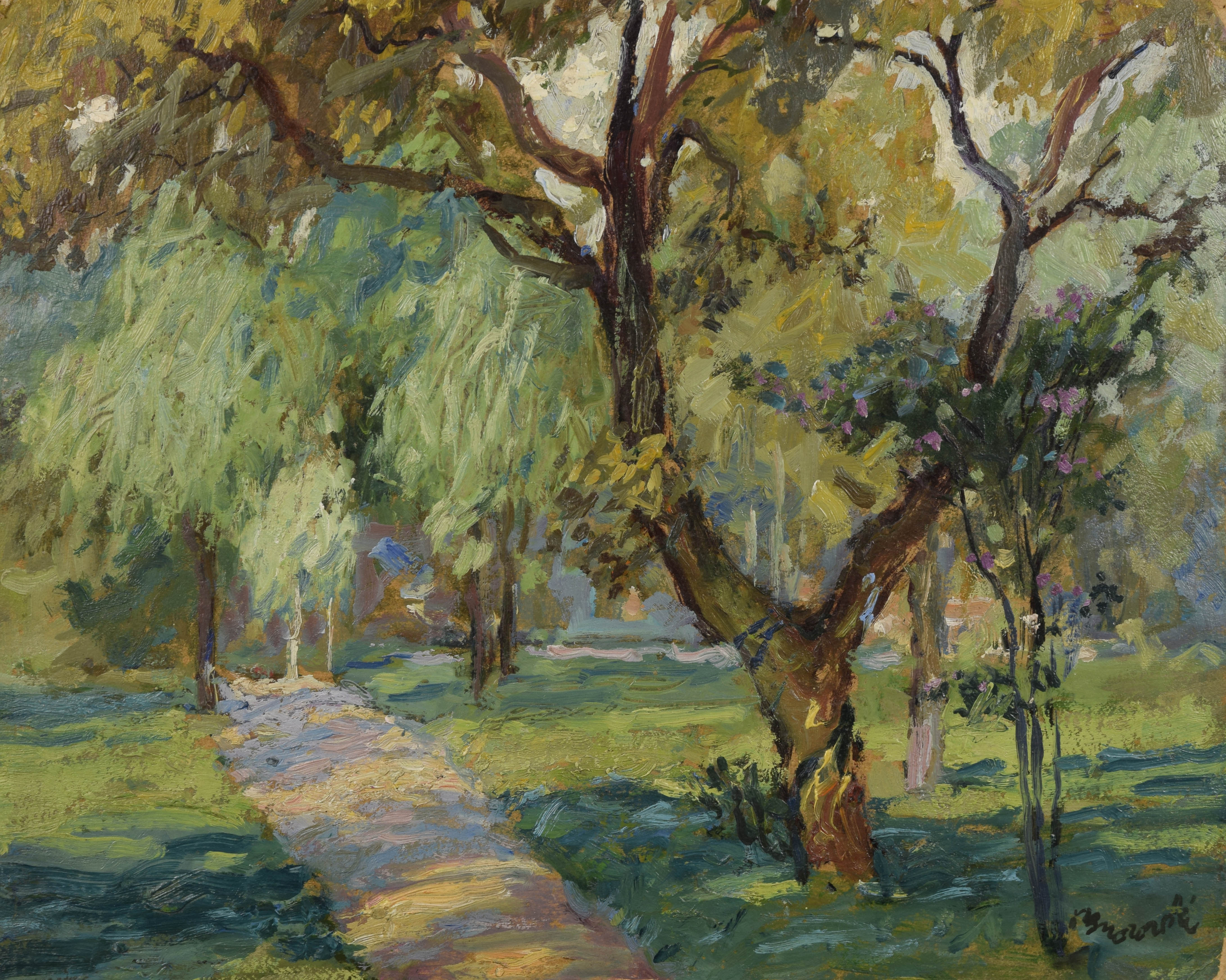 olej, tektura; 24 x 29,5 cm;sygn. p. d.: Brzozowski;na odwrocie napis: Aleja w parku; oraz No 6.