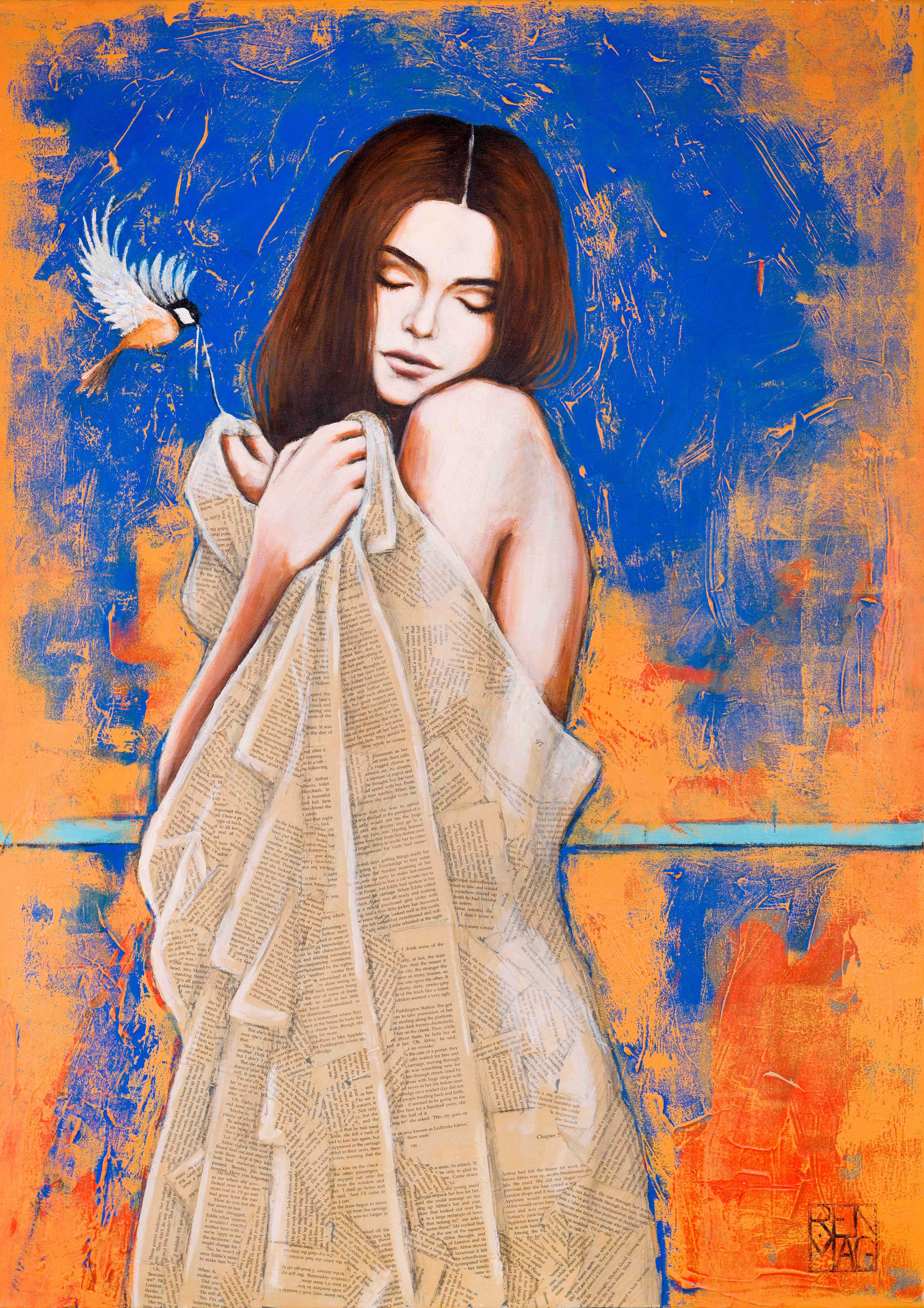 akryl, kolaż, płótno100 x 70 cmsygn. p.d.: REN|MAG;sygn. na odwrociu: gmerk arystki | Scraps of memory...| Renata Magda
