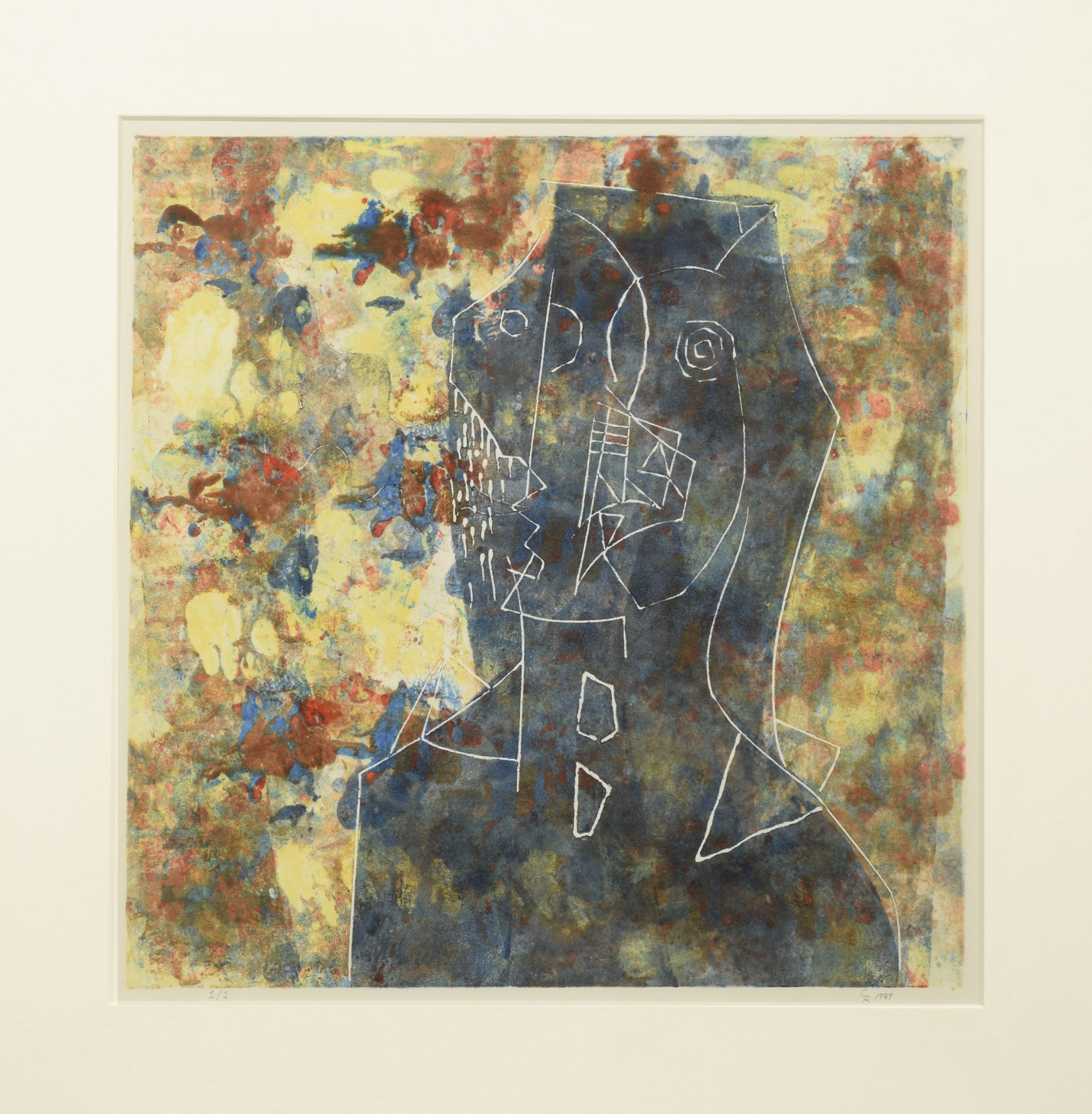 technika własna, papier; 34 x 34 cm (wymiar arkusza w świetle oprawy);sygn. i dat. p. d.: CR 89 (ołówkiem), opisana l. d.: 1/1 (ołówkiem)