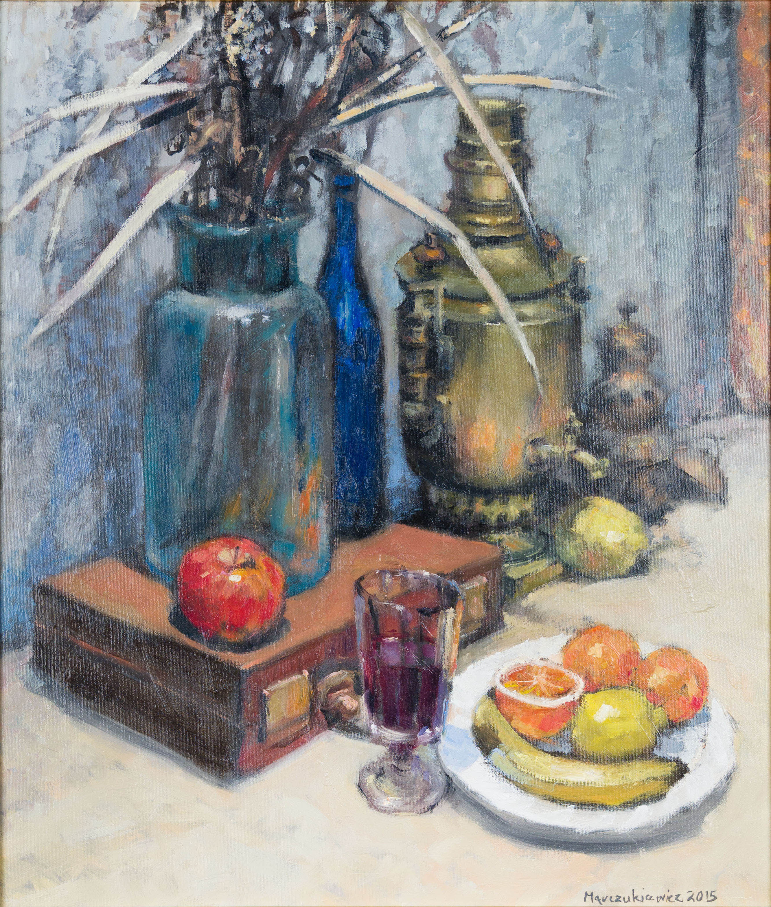olej, płótno70 x 60 cmsygn. p.d. Marczukiewicz 2015;sygn. p.d.: Adam Marczukiewicz | Martwa natura | z samowarem | 2015