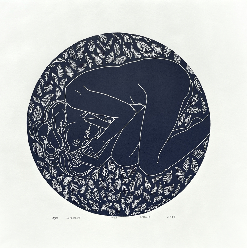 sygn. p.d. Agnieszka Borkowska, dat. śr.d. 2019,linoryt (10/12),30,5 x 30,5 cm