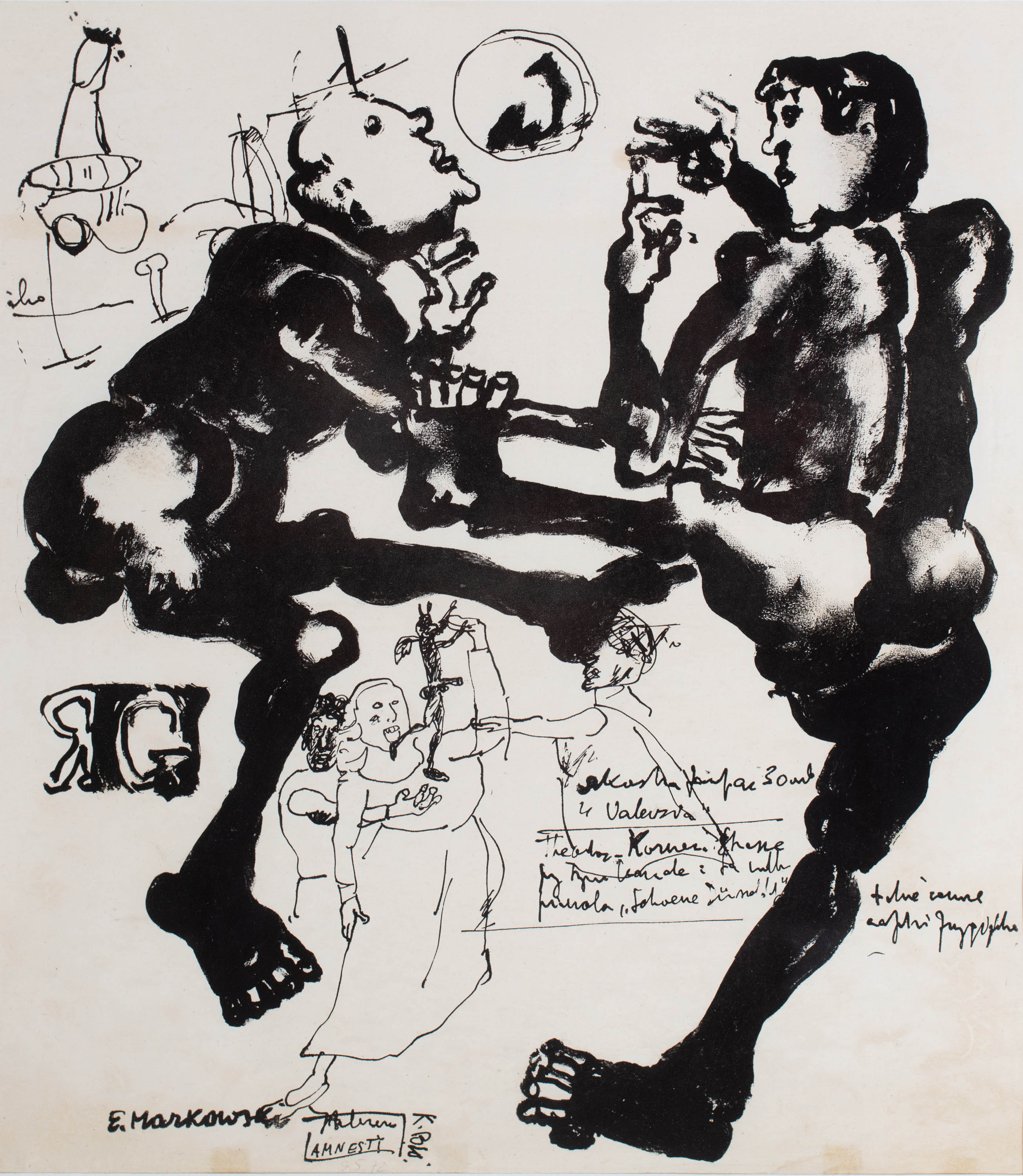tusz, papier, 46 x 42 cm,sygnowany l.d.: "E. Markowski", datowany ołówkiem: "9.5.72"