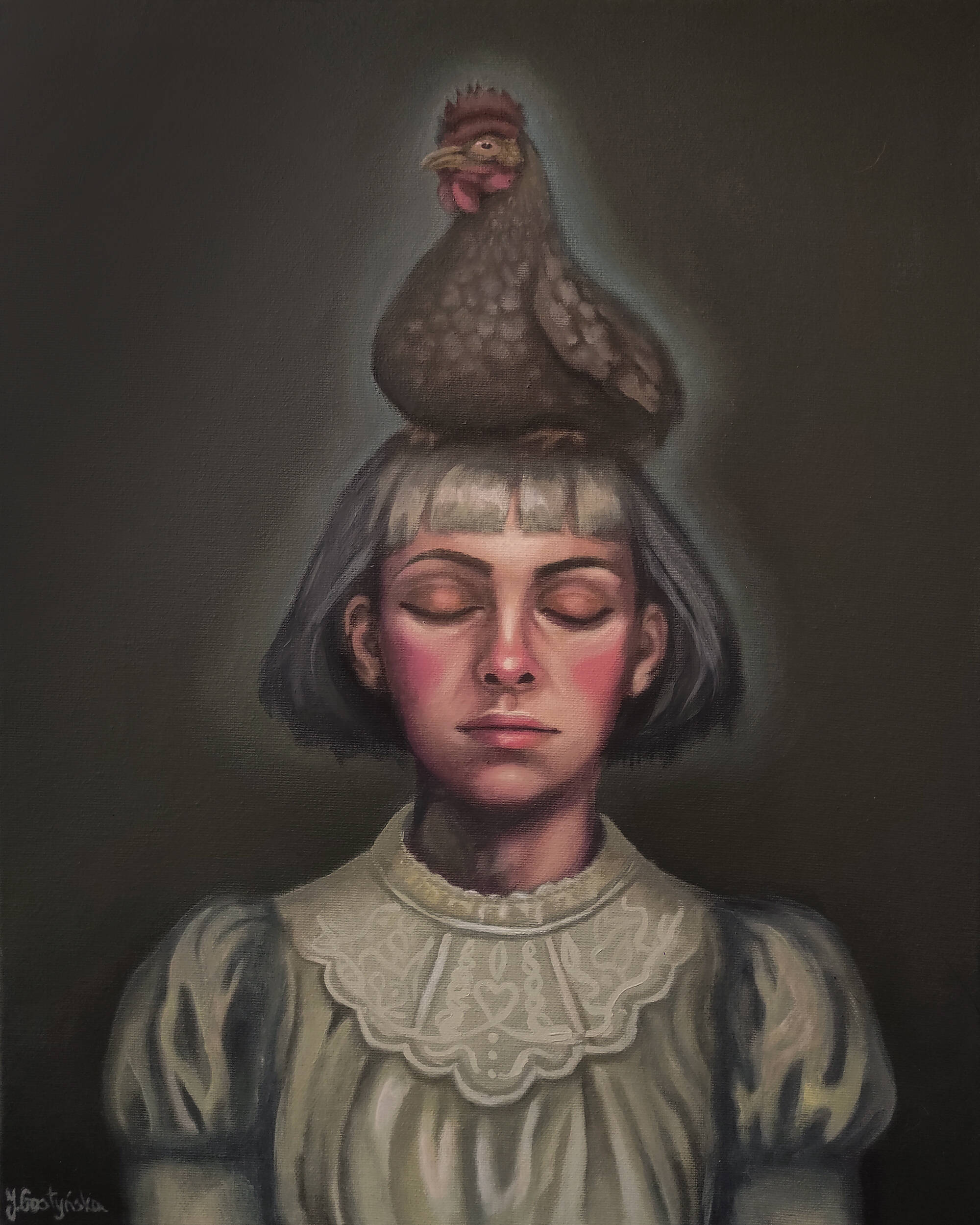 Czułość II - kobieta z kurą z cyklu Współodczuwanie, 2025