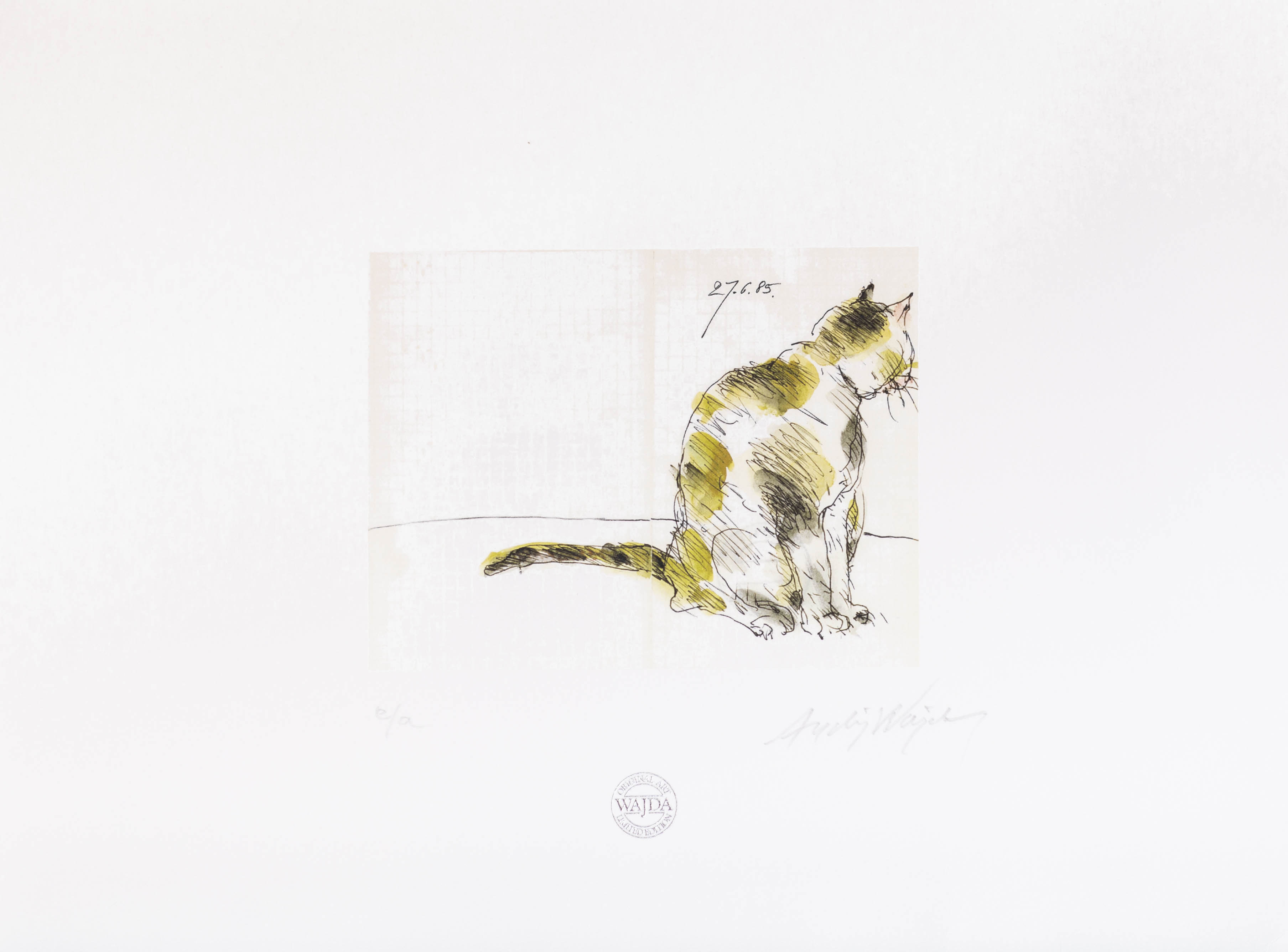 sygnowana ołówkiem, posiadająca autorską pieczęć tłoczoną folią, powstała według pracy autorstwa Andrzeja Wajdy z 1986 roku, posiada atest Antoniego Rodowicza Wybrane wystawy cyklu: GaleriaArt, Warszawa, 2011; Muzeum Sztuki i Techniki Japońskiej Manggha, Kraków 2011;Galeria Dworek Sierakowskich, Sopot, 2011Galeria Miejska BWA, Bydgoszcz, 2011 Suwalski Ośrodek Kultury, Suwałki, 2016Praca reprodukowana jest w:Andrzej Wajda Rysunki z całego życia, Świat Książki, 2011Andrzej Wajda Rysunki, Multiart, 2019 (wydanie uzupełnione i poszerzone)