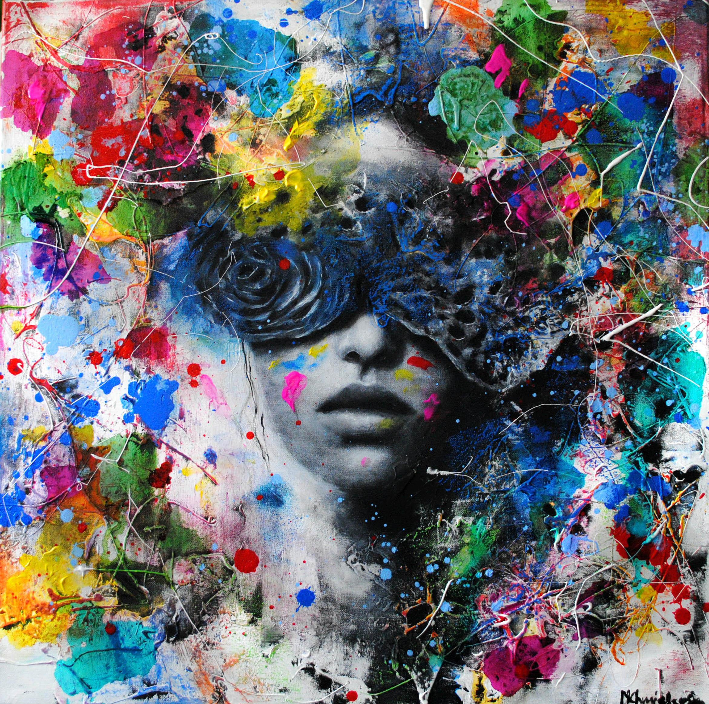 technika mieszana (akryl, olej), płótno, 70 x 70 cm,