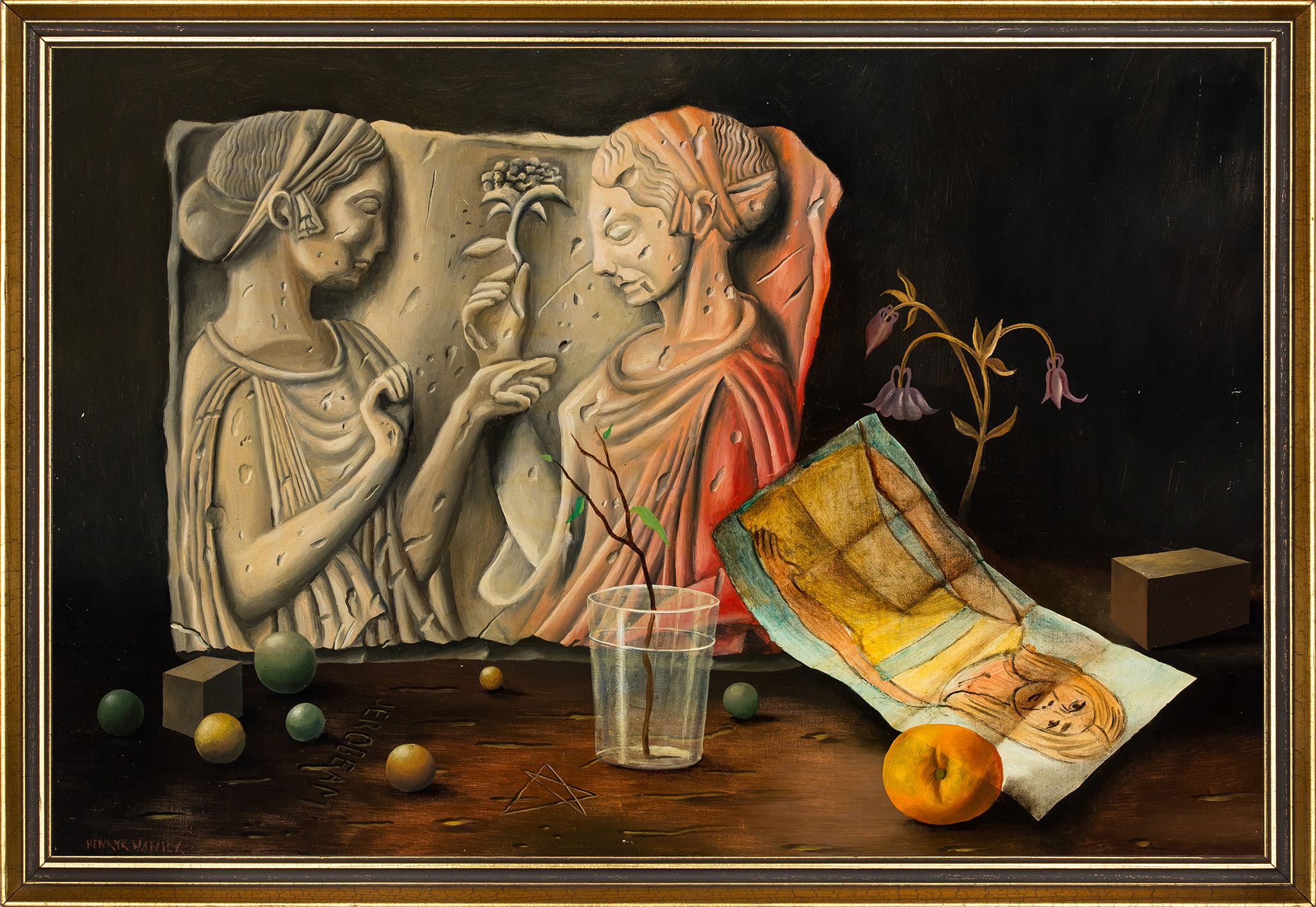 Na odwrocie fragmentarycznie zachowana nalepka z Ogólnokrajowych Targów Polskiej Plastyki Współczesnej.