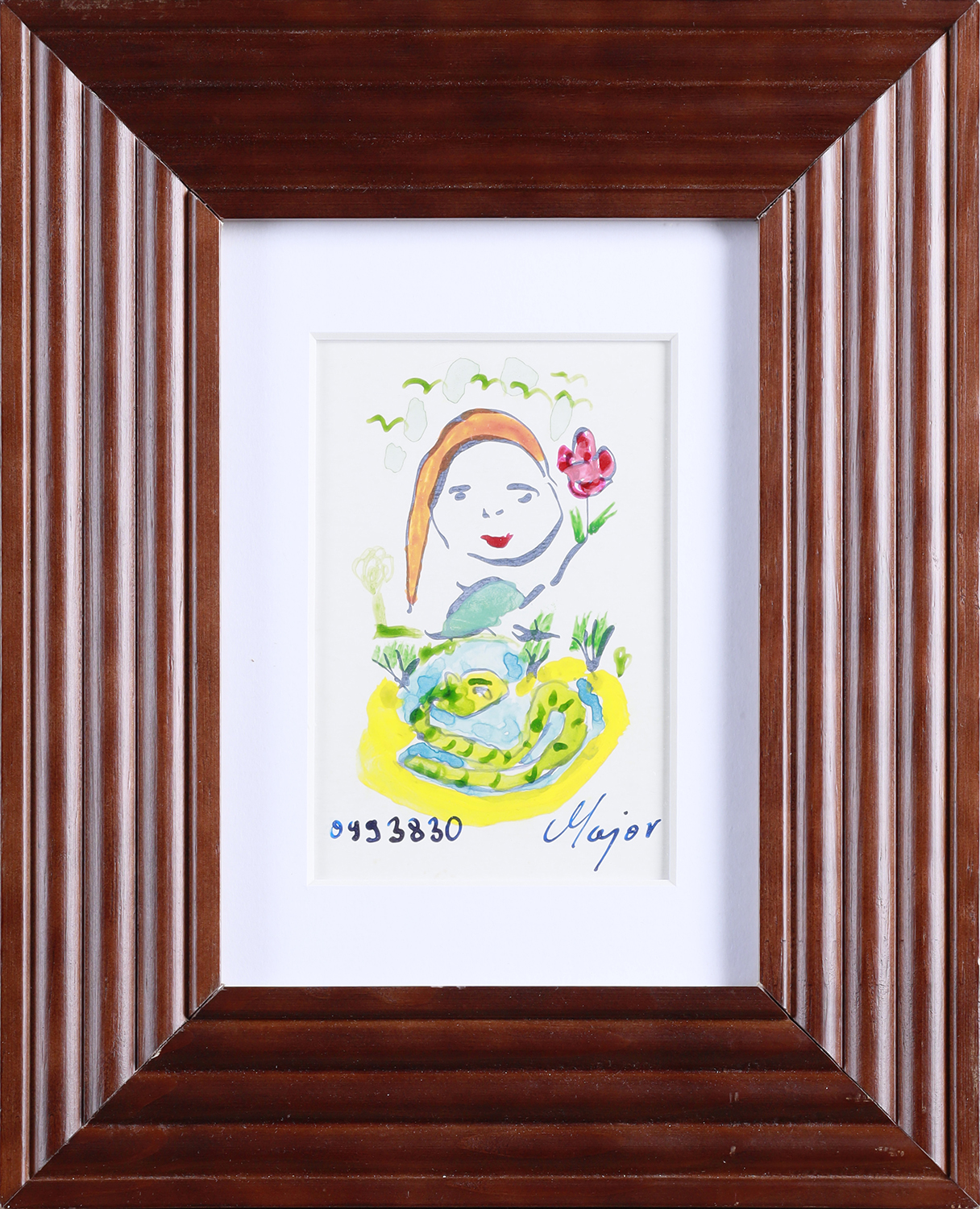 piórko, tusz, akwarela, papier, 12 x 8 cm; (w świetle oprawy);