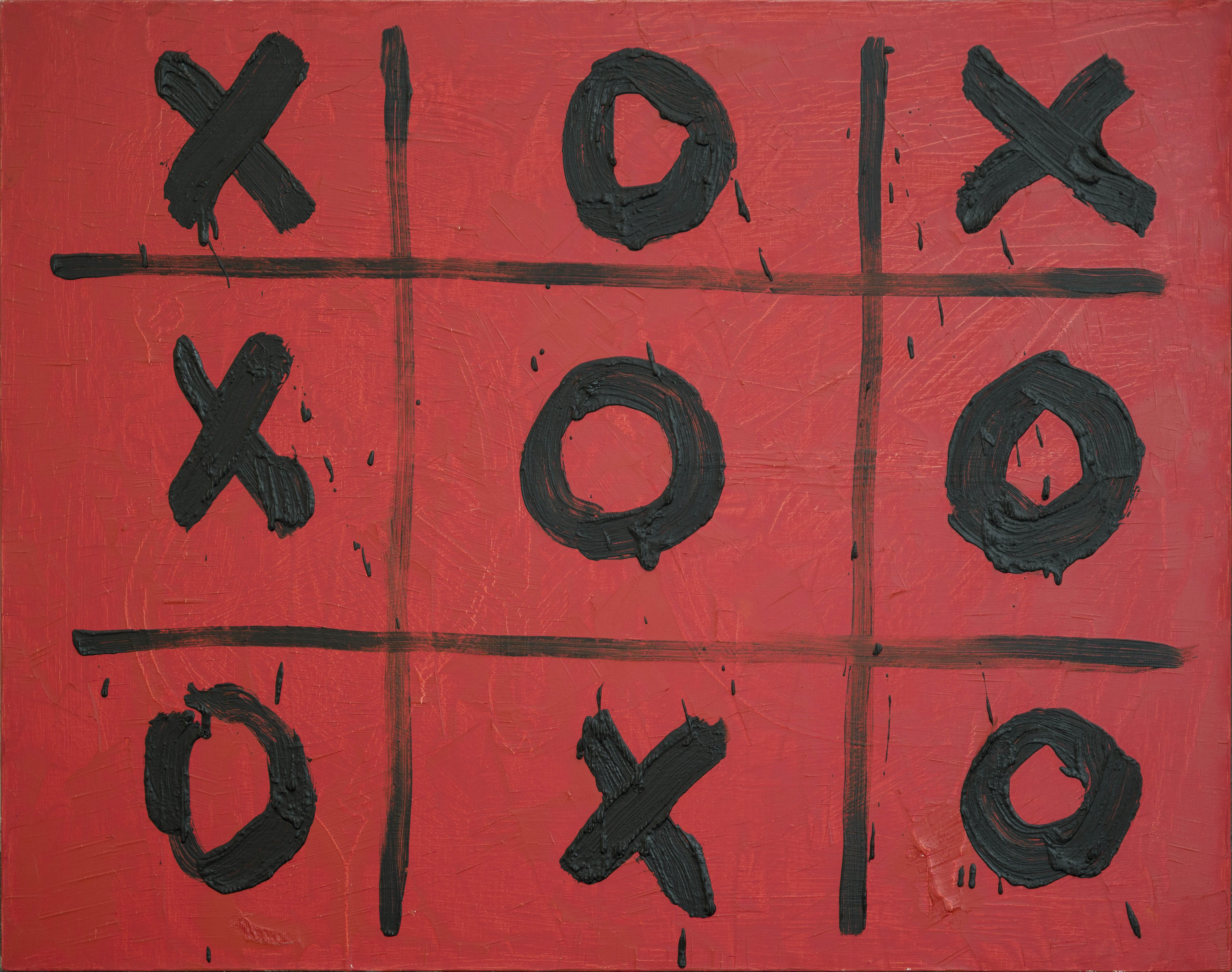 „Kółko-krzyżyk” to charakterystyczna dla Włodzimierza Pawlaka gra z prostą formą, rytmem i pamięcią wizualną. Artysta wykorzystuje układ znanej dziecięcej gry, by przekształcić go w autonomiczną strukturę malarską – pole eksperymentu z kolorem, znakiem i repetycją. Praca wpisuje się w szerszą praktykę Pawlaka, w której pozornie banalny motyw staje się pretekstem do refleksji nad językiem obrazu i możliwościami abstrakcji.