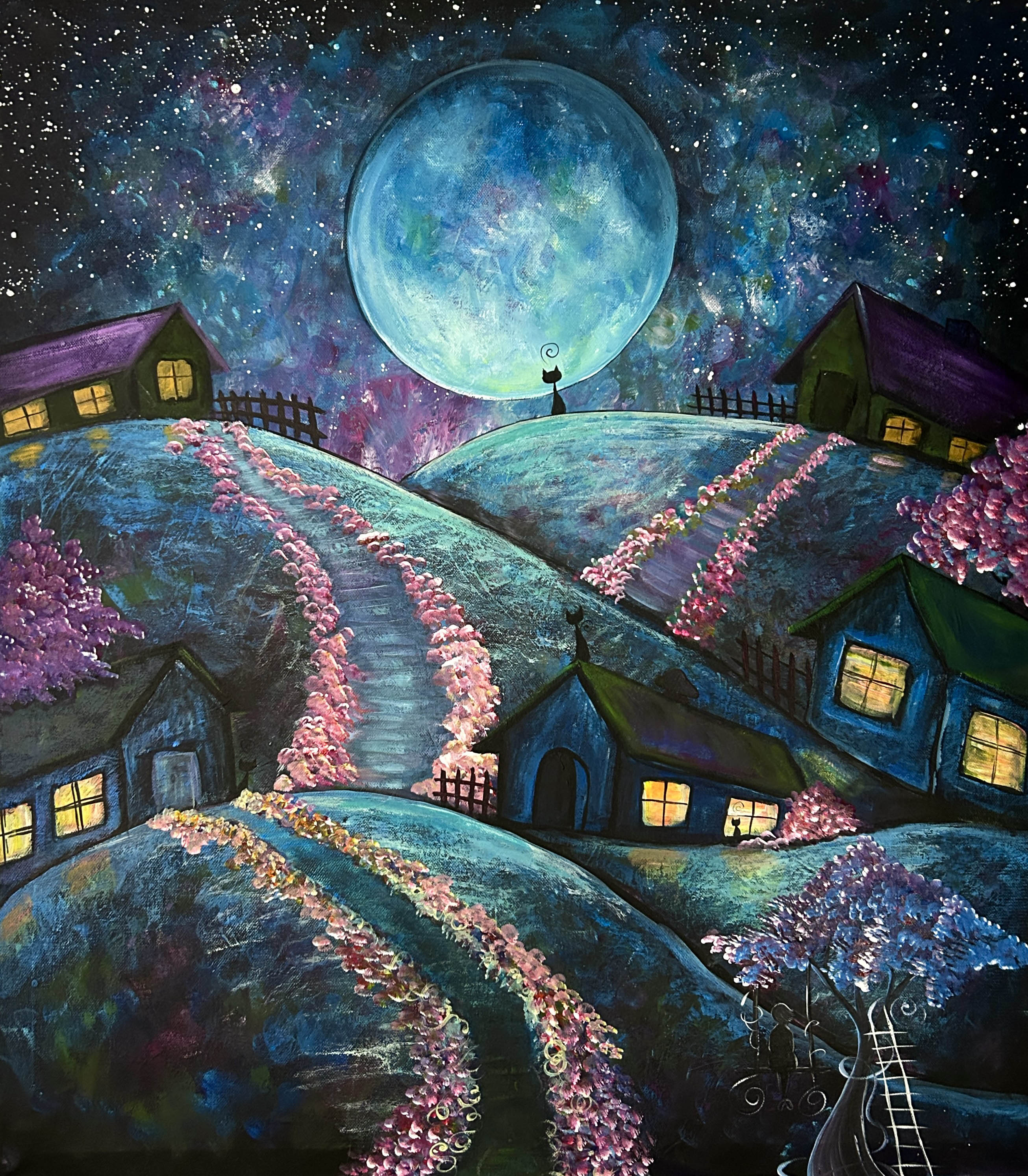Miłość do tworzenia malowanych historii na płótnie pozwala i jej i odbiorcy przenosić się dokądś od, ale i do. W wielości spraw codziennych, ich szybkości to właśnie w sztuce można być na chwile gdzieś spokojniej, gdzieś w przemyśleniu i zatrzymaniu.