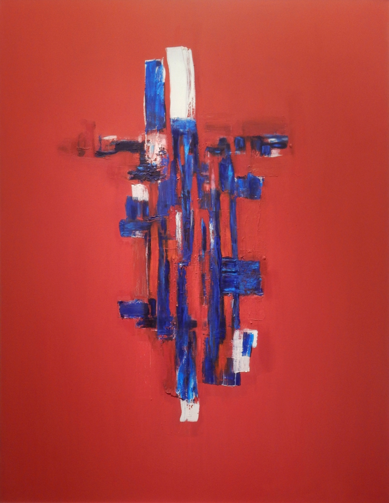 olej/płótno/żywica epoksydowa, 152,50 x 122 cmsygnowany, opisany, datowany na odwrociu: CAROLINA KHOURI, ABSTRACT IN RED No 5, OIL ON CANVAS AND GLAZING, 2014-2016