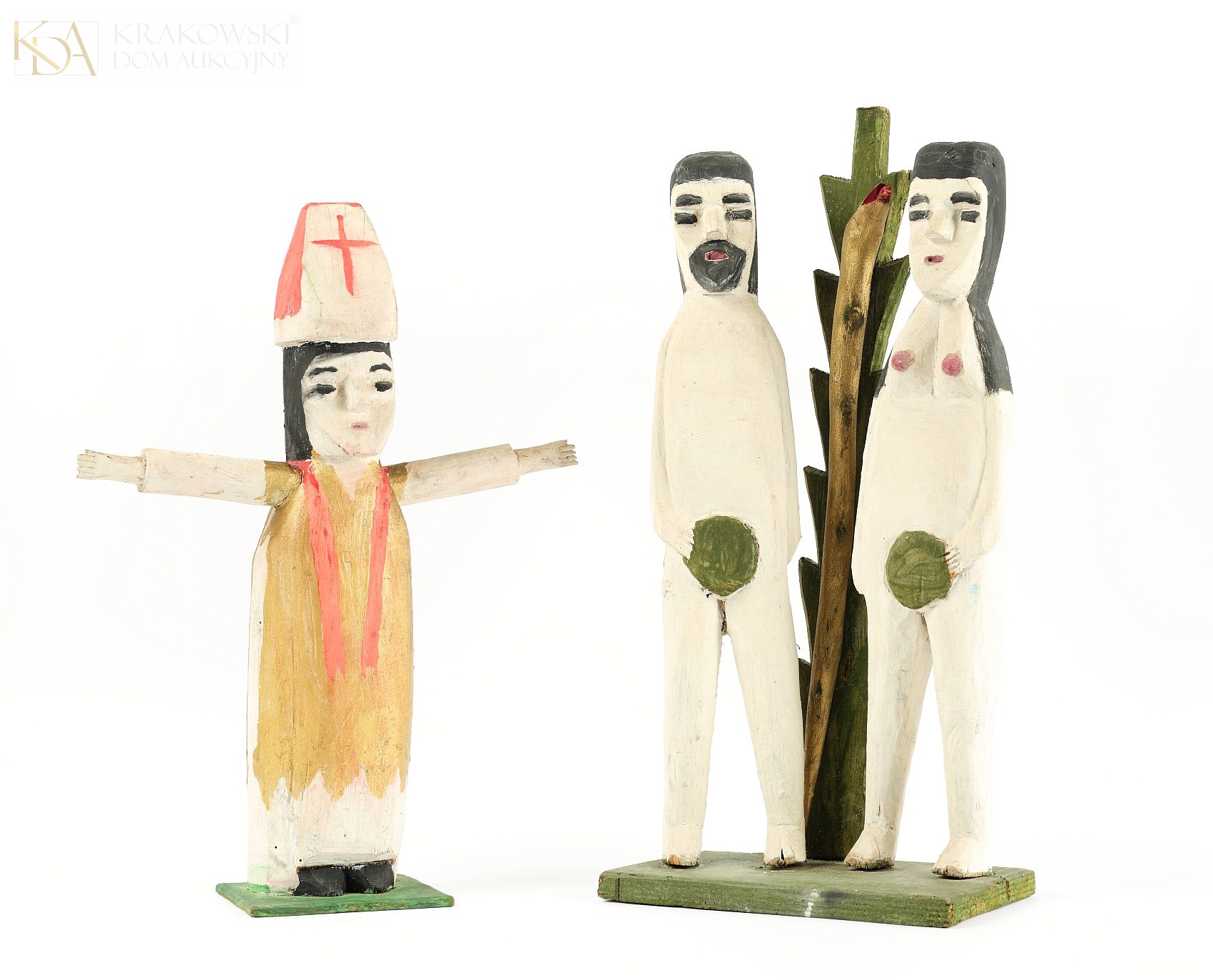 Adam i Ewa - drewno polichromowane, 46 x 21 x 13,5 cm, opisana na spodzie podstawy: "Głód 38"