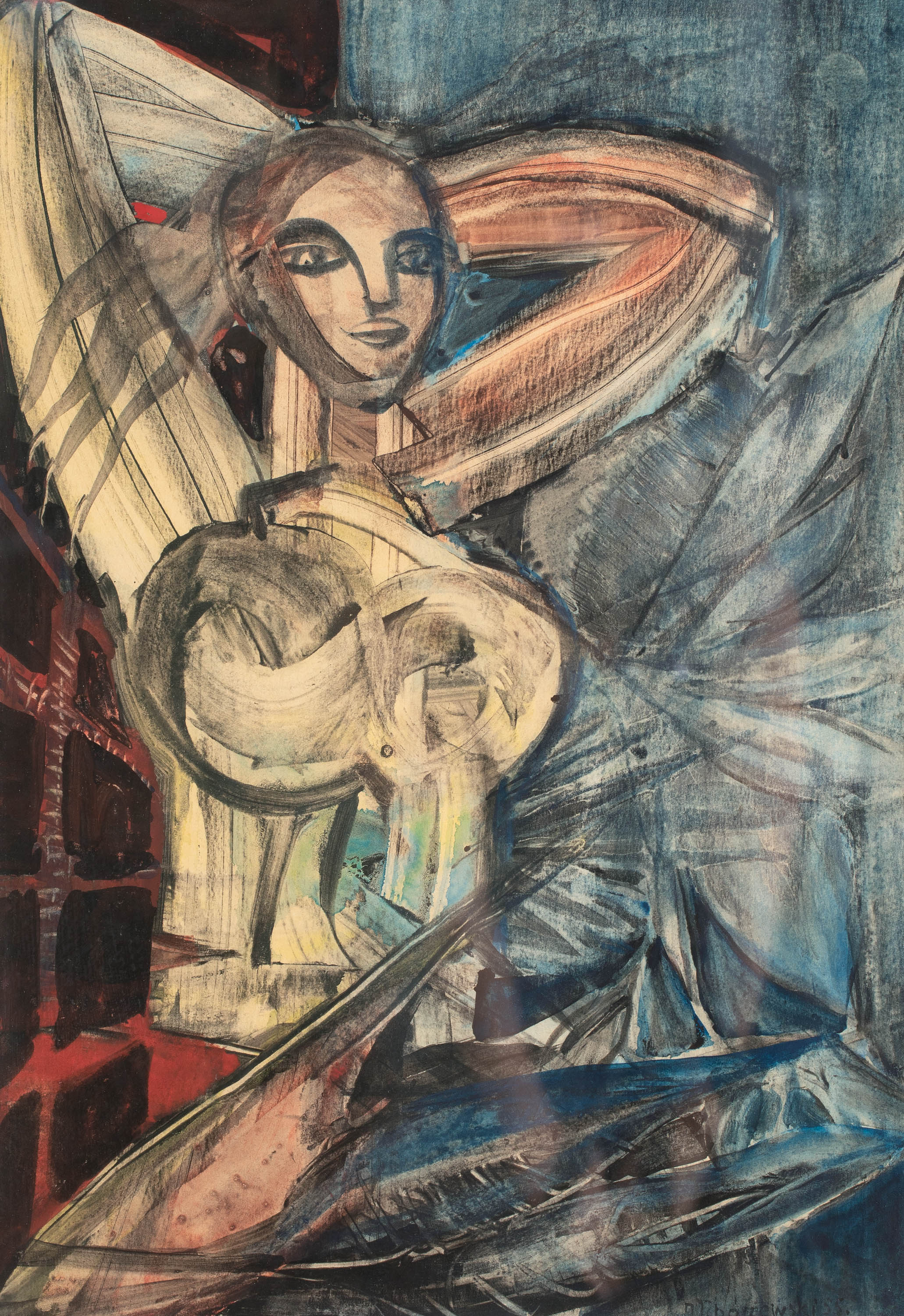 gwasz, pastel, papier, 48,5 x 33,5 w świetle oprawy