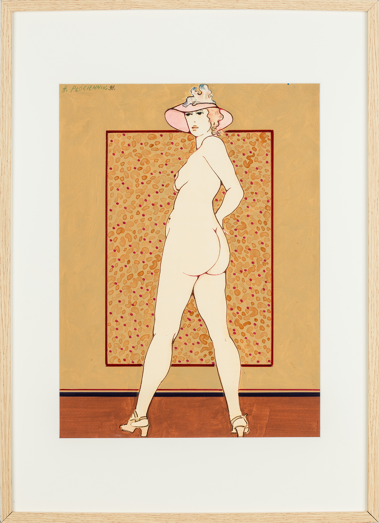 technika własna (tusz, akwarela) na papierze, 1999 rok, 48,5 x 36 cm,sygnowana i datowana w lewym, górnym rogu: "H. PŁÓCIENNIK 99."