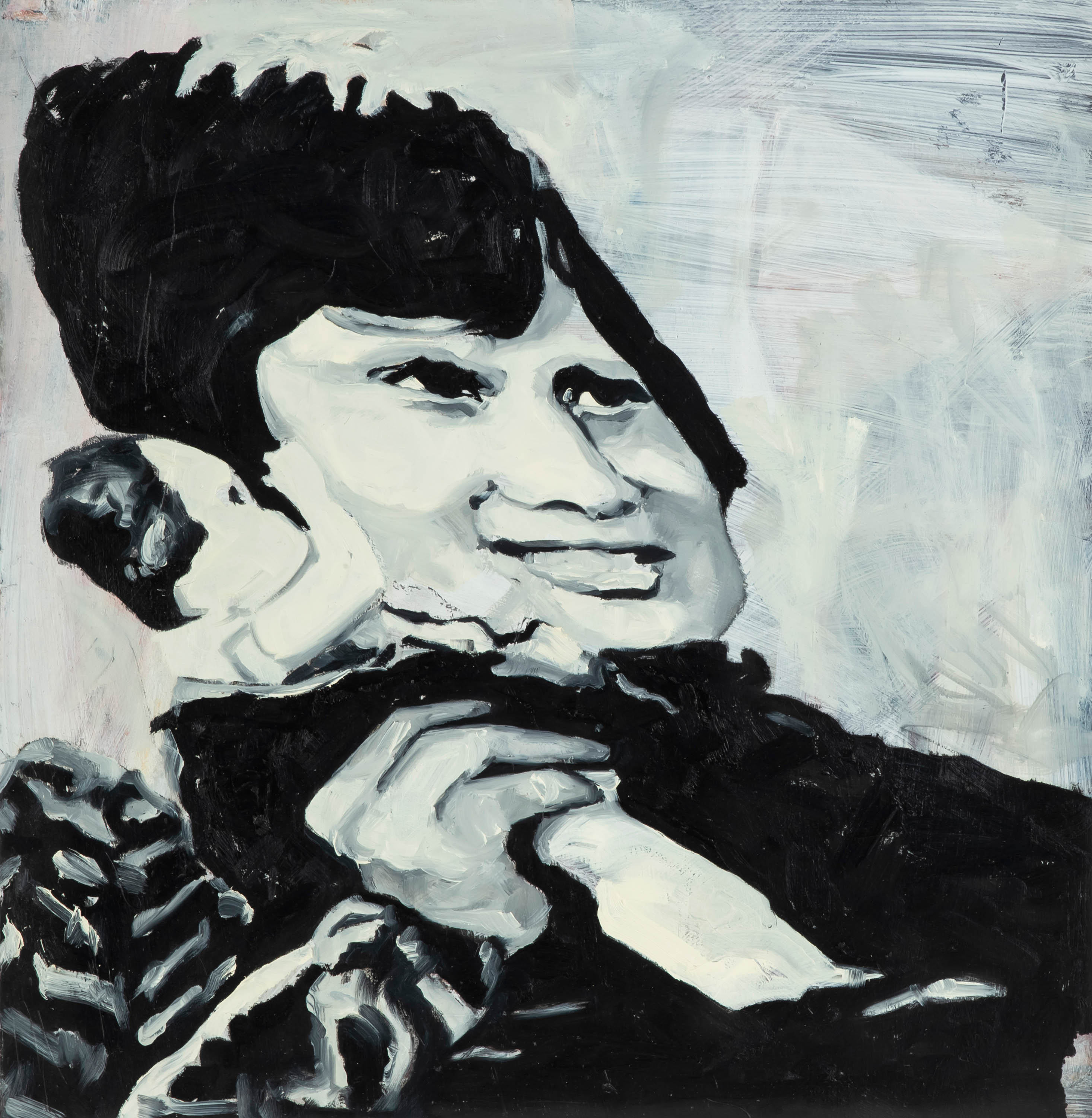 olej, papier, 50 x 49 cm, opisany,sygn. i dat. na odwrocie: Jews / "Chłopiec z lalką / Ambulans" / The Krasnals I 2016