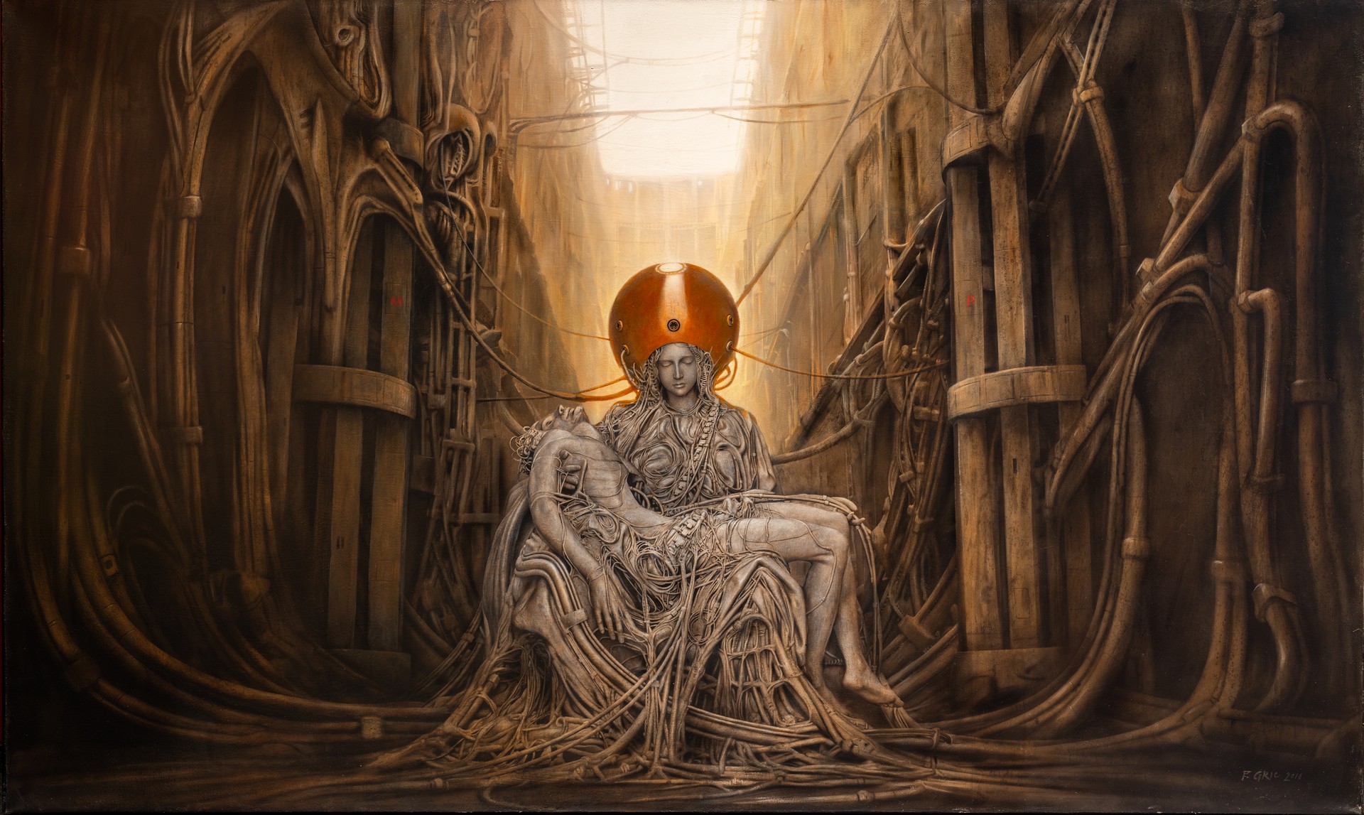 akryl, płótno, 120 x 200 cm,sygnowany p.d.: 'P. GRIC 2016' oraz opisany na odwrocie: '"ANDROID PIETA III" | P. GRIC 2016 | ACRYLIC | ANDROID PIETA'
