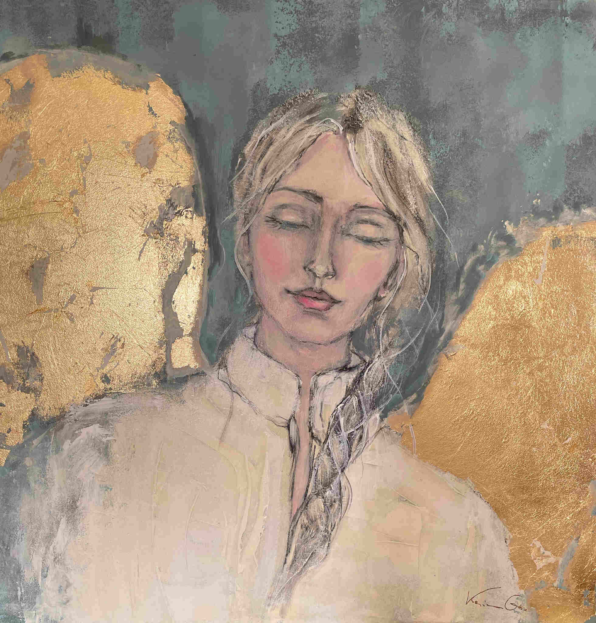 akryl, szlagmetal, płótno, 80 x 80 cm