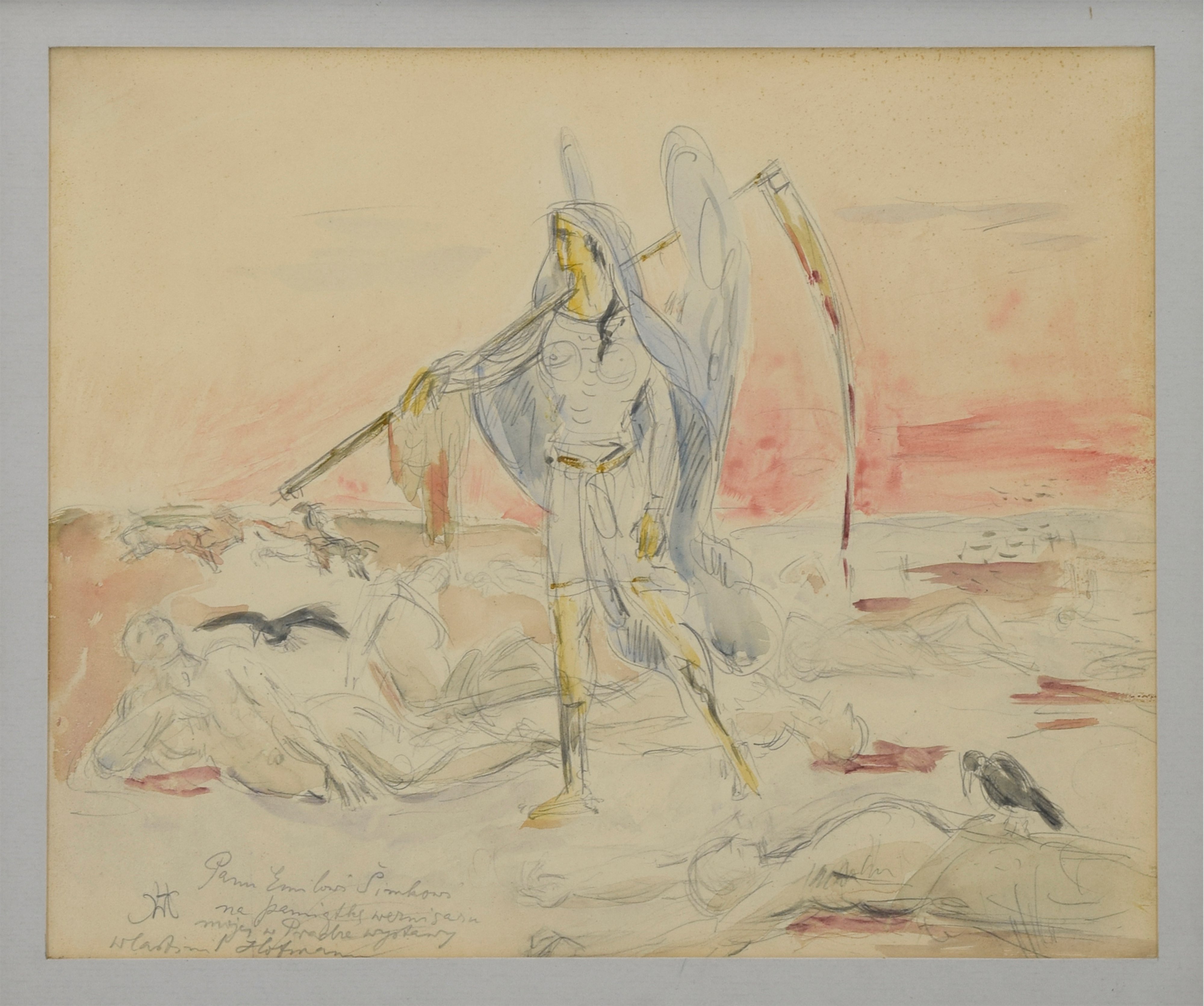 akwarela, ołówek, papier; 25 x 33 cm;sygn. l. d.: WH (ołówkiem),obok dedykacja z podpisem artysty: Panu Emilowi Siwkowi / na pamiątkę wernisażu / mojej w Pradze wystawy / Wlastimil Hofman (ołówkiem);na odwrocie szkic ołówkiem.