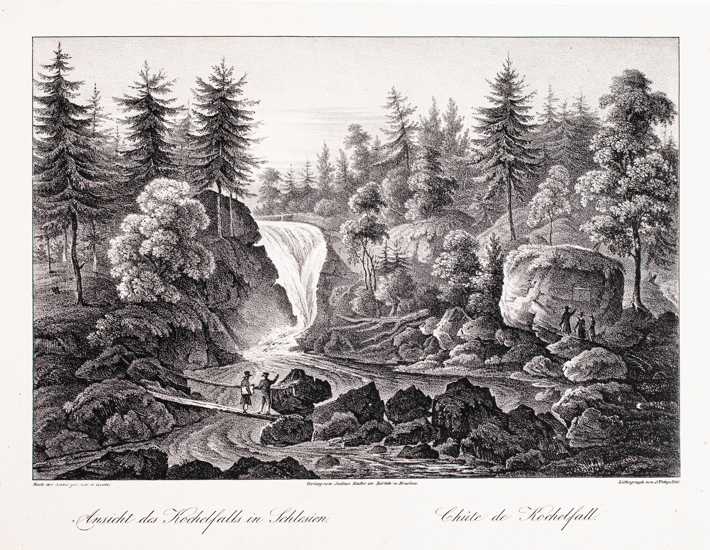 Widok wodospadu Szklarka według S. Rösela, wyd. Julius Kuhr, Berlin, ok. 1830litografia, wym. arkusza 22,5 x 30 cmstan zachowania bardzo dobry