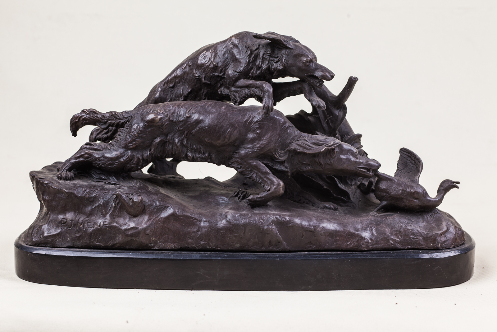 wymiary: 220mm - 420mm - 160mmBrąz patynowany na podstawie z granitu, sygnowany u dołu: "P.J. Mene". Stan zachowania bardzo dobry.