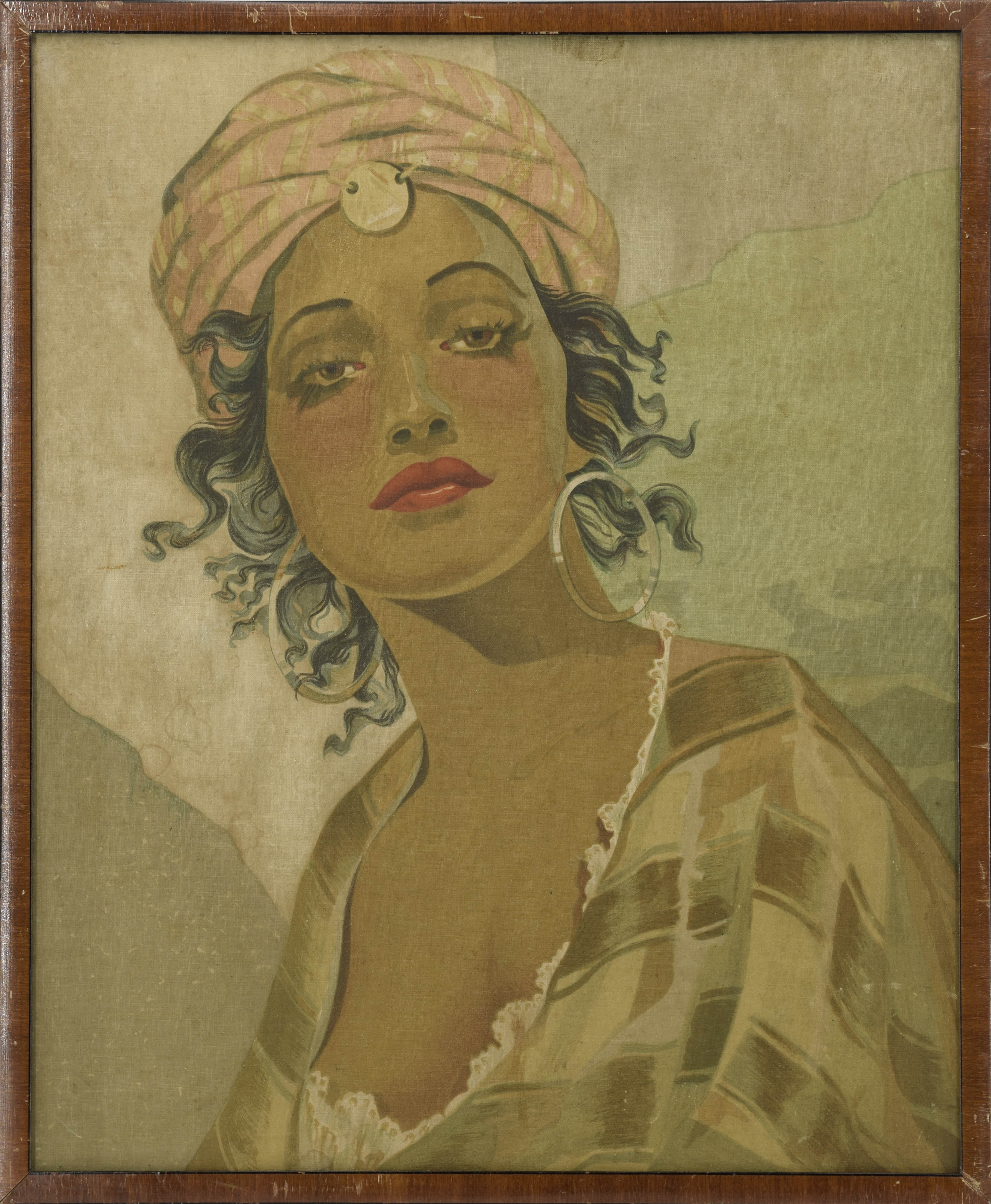 drzeworyt barwny, płótno; 50,5 x 42 cm (obcięte boki).