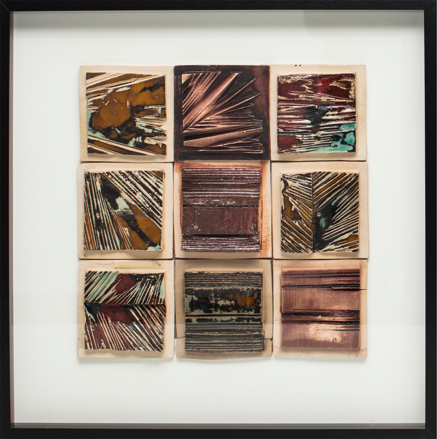 ceramika szkliwiona, gablota szklana, 34x34 cm kompozycja, 52x52x4,5 cm oprawaopisany na odwrocie: ANETA ŚLIWA 2017 r. "ARGENTYNA 1922"