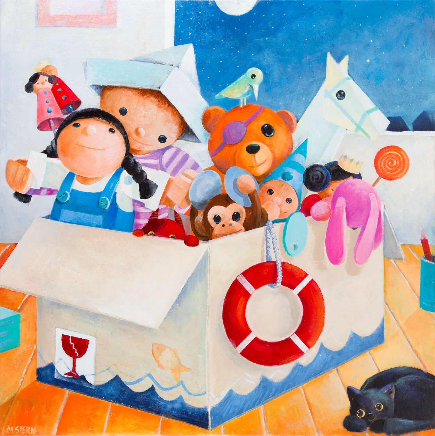 akryl, technika własna/płótno, 100 x 100 cmsygnowany l.d.: 'M. STERN'opisany na odwrociu: '"ARKA NOEGO LUB TITANIC" 2020 | Mirella Stern'