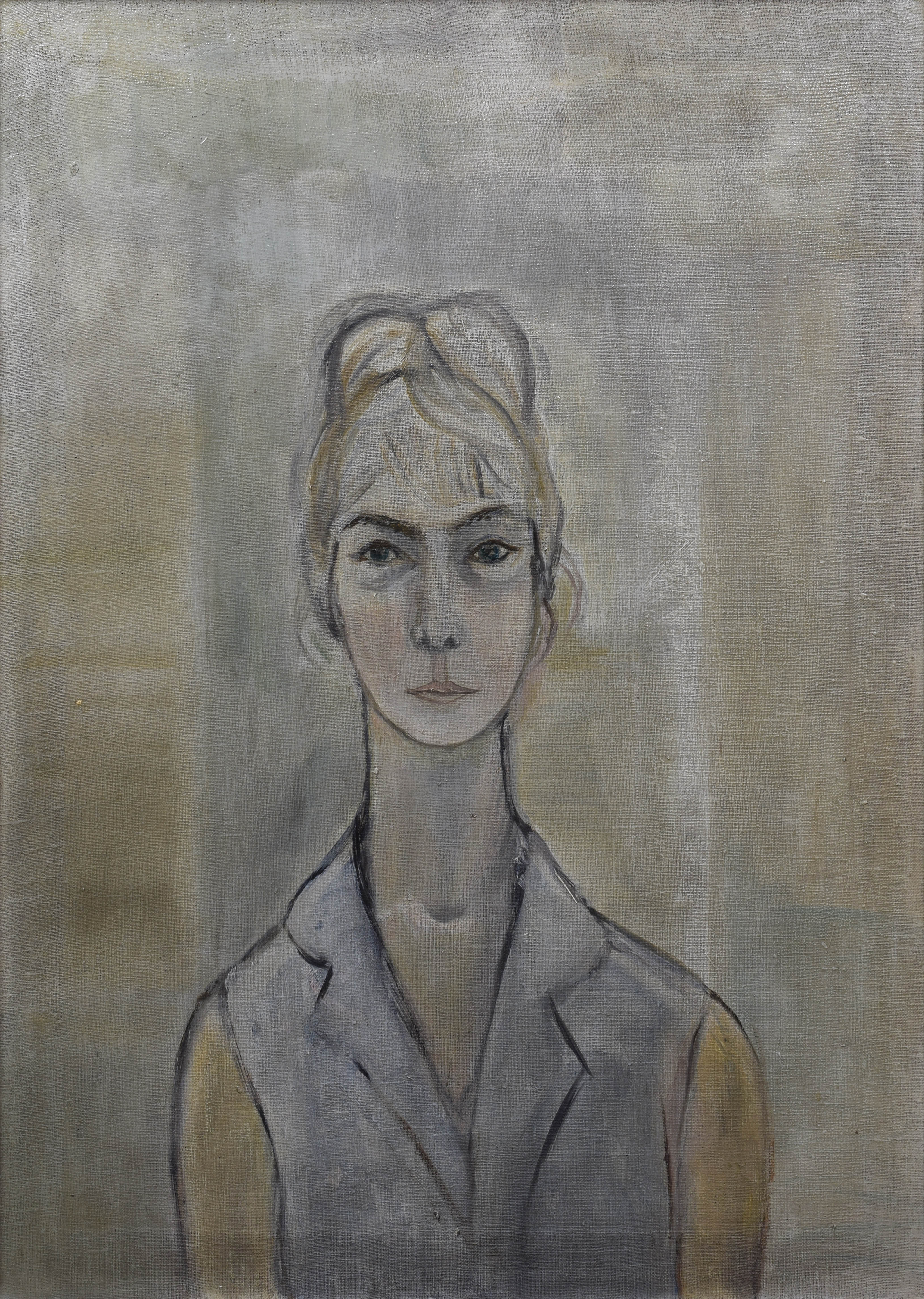 olej, płótno; 90 x 65 cm; opis autorski na odwrocie na krośnie malarskim: ANNA GINALSKA "AUTOPORTRET" - 1964; oraz informacje o wystawach: TPSP w 1964, Galeria Pryzmat 76, MPiK zakopane 1976.
