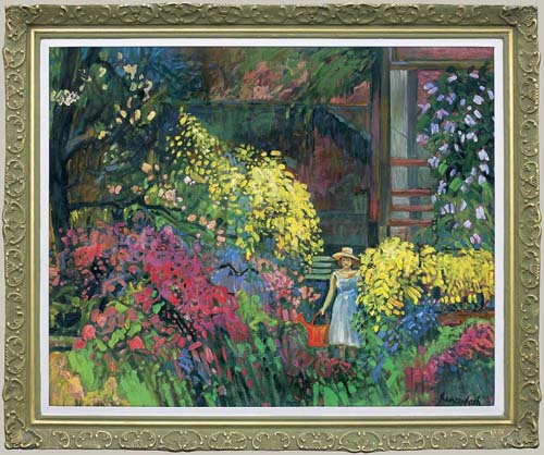 Obraz przedstawia widok na ogród przy krakowskim domu artysty (przy ulicy Halki, na Woli Justowskiej). Ogród ten Szancenbach malował wielokrotnie - tak latem, jak i zimą. Jest to jeden z ostatnich obrazów przedstawiających krzewy kwitnących azalii i jedno z ostatnich dzieł artysty.