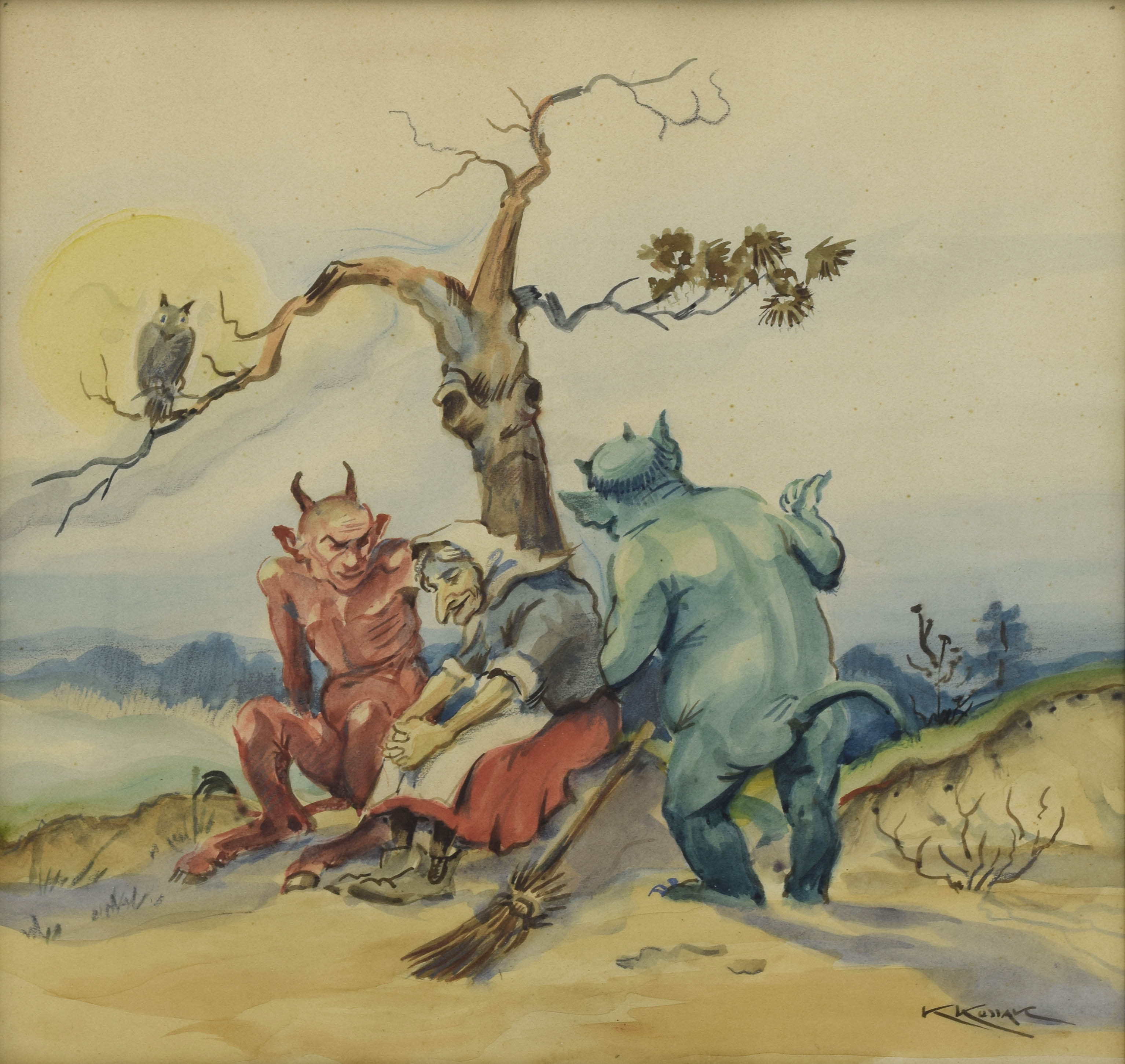 ołówek, akwarela, papier; 29 x 31 cm (w świetle oprawy);