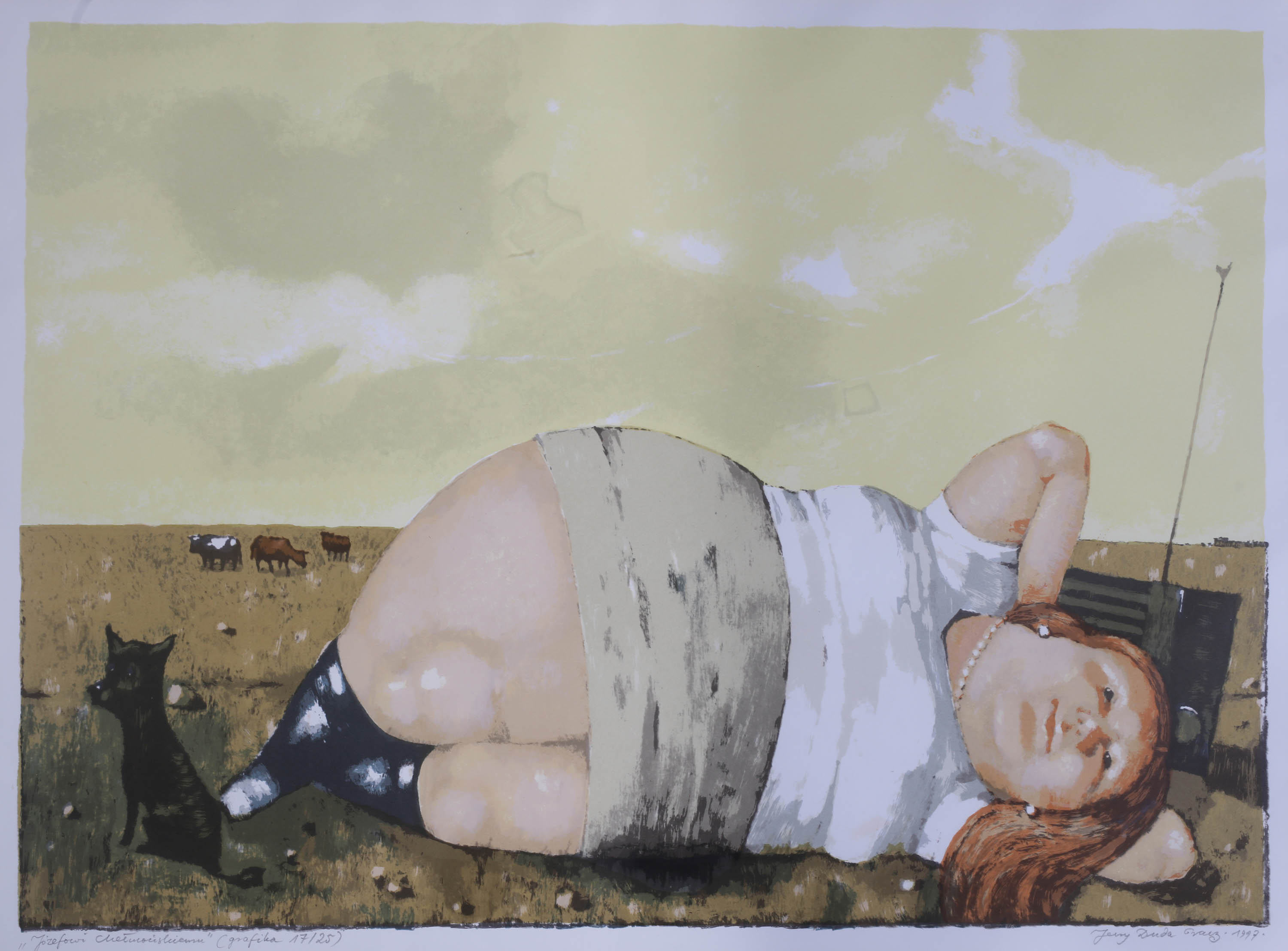 litografia, papier, 59,5 x 81 cm (w świetle passe-partout),sygnowany p.d.: Jerzy Duda Gracz 1997, w l.d. ołówkiem: Józefowi Chełmońskiemu grafika 17/25
