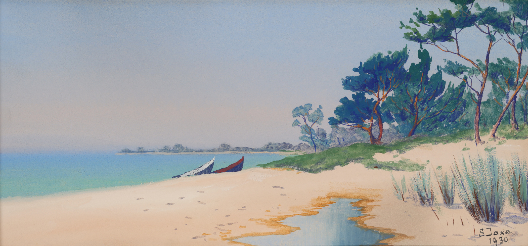 gwasz, tempera, tektura23,5 x 49 cm; 32 x 57,5 cm (z oprawą)Sygn. i dat. p.d.: "S Jaxa | 1930"