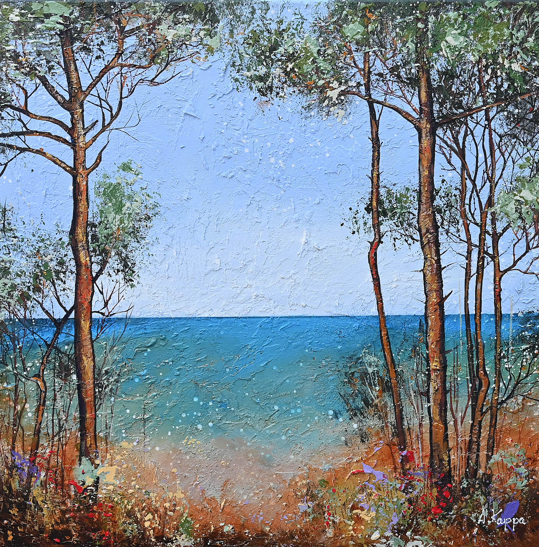 technika mieszana (akryl, szlagmetal), płótno, 50 x 50 cm,