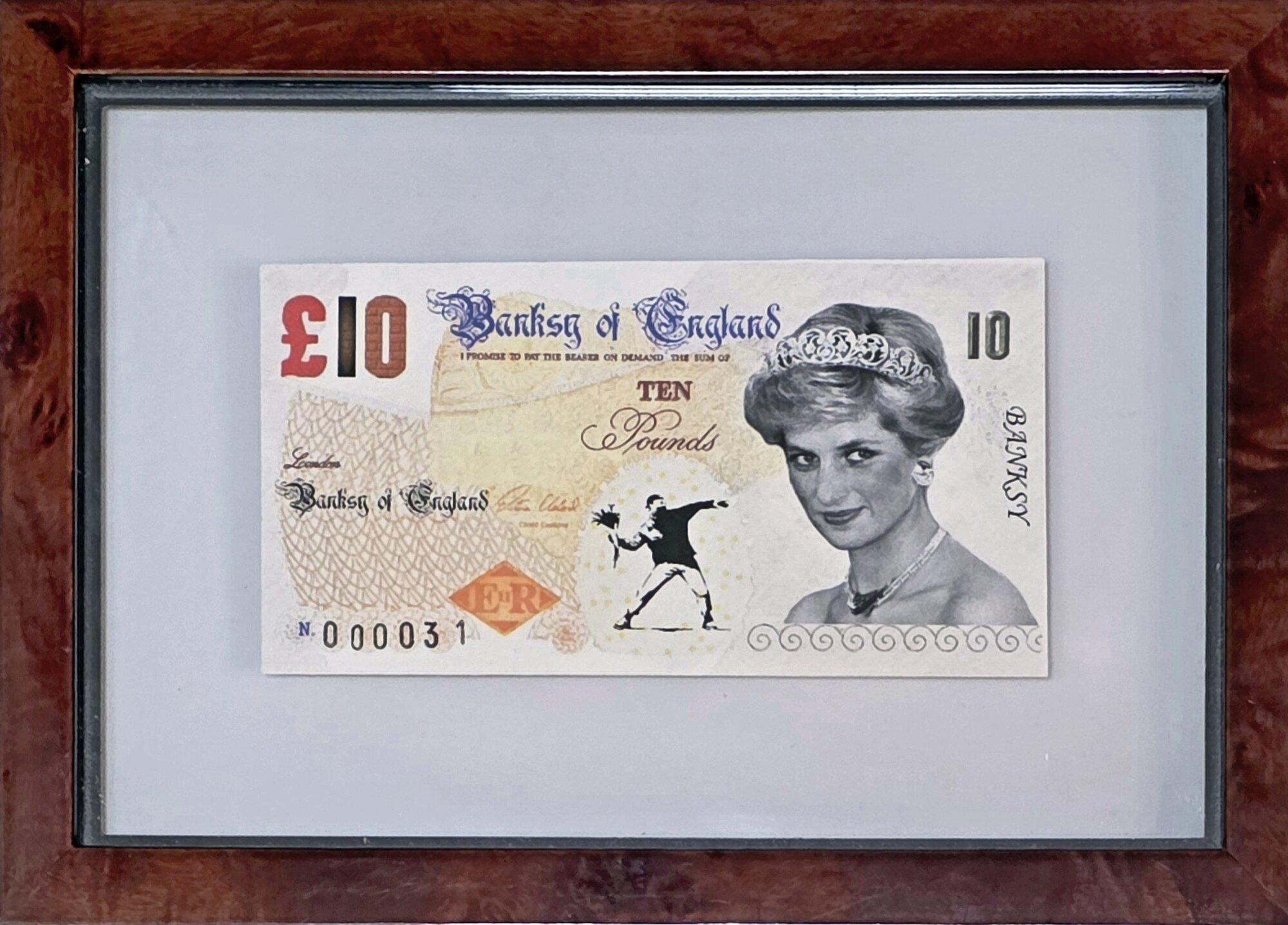 Limitowana litografia offsetowa banknotu 10 funtów szterlingów Banksy'ego z wizerunkiem księżnej Diany.