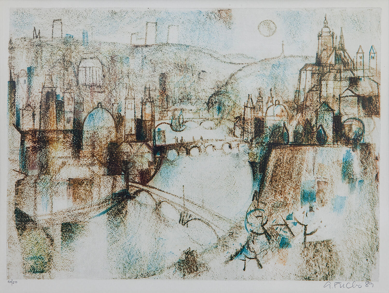 litografia barwna, papier, 40/50, 25,2 x 35 cm (kompozycja), numerowany l.d.: 40/50, sygn. P.d.: A. Fuchs 89Oprawiona, passe-partout, rama aluminiowa, drewniana apla, ok. 91 x 71 cm