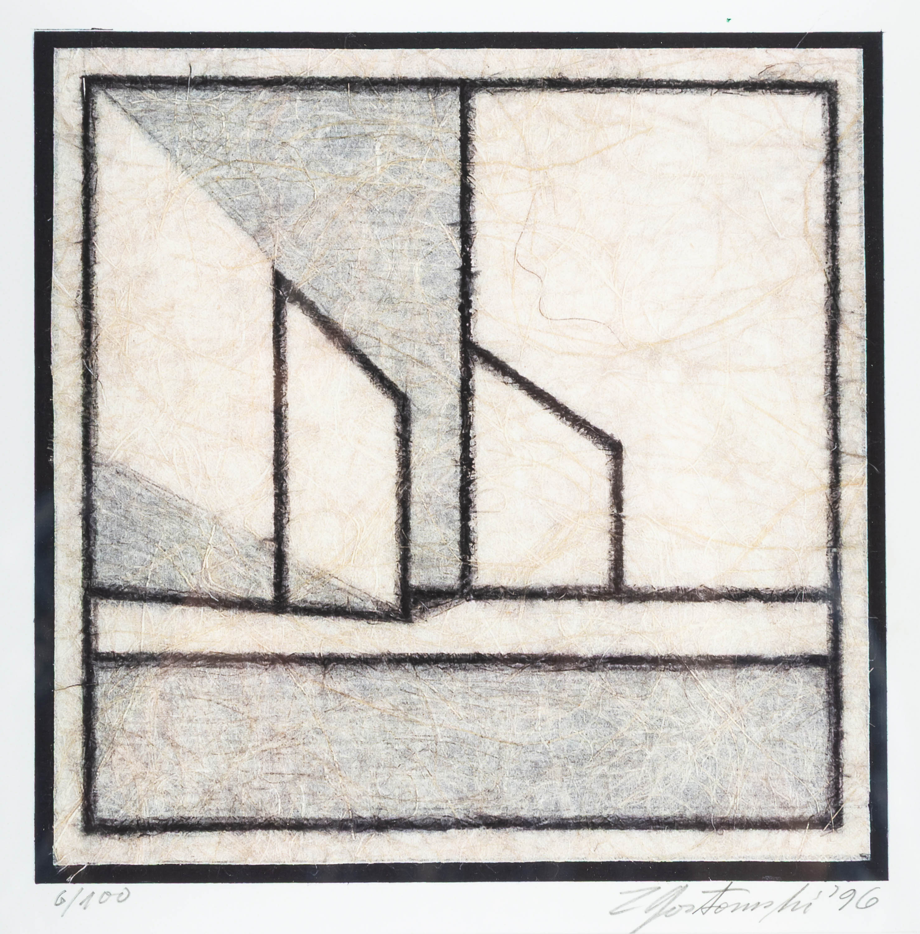technika własna, papier ręcznie czerpany, 16,5 x 16,5 cm w świetle passe-partout,sygn. i dat. p.d.: ZGostomski 96, opisany l.d.: 6/100