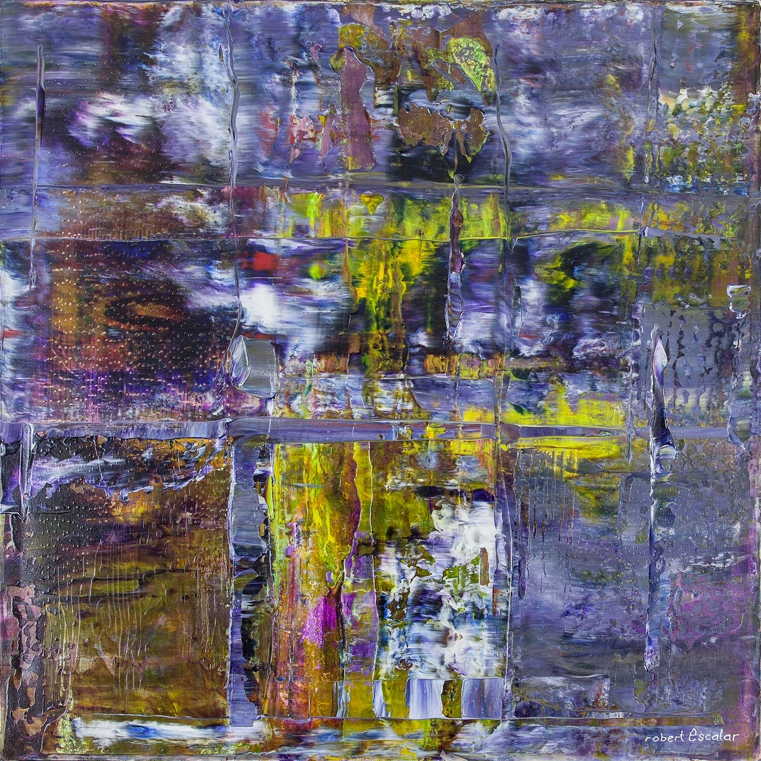 akryl, płótno; 80 x 80 cm;na odwrocie nalepki z autorskim opisem, sygnaturą tytułem oraz suchymi pieczęciami.
