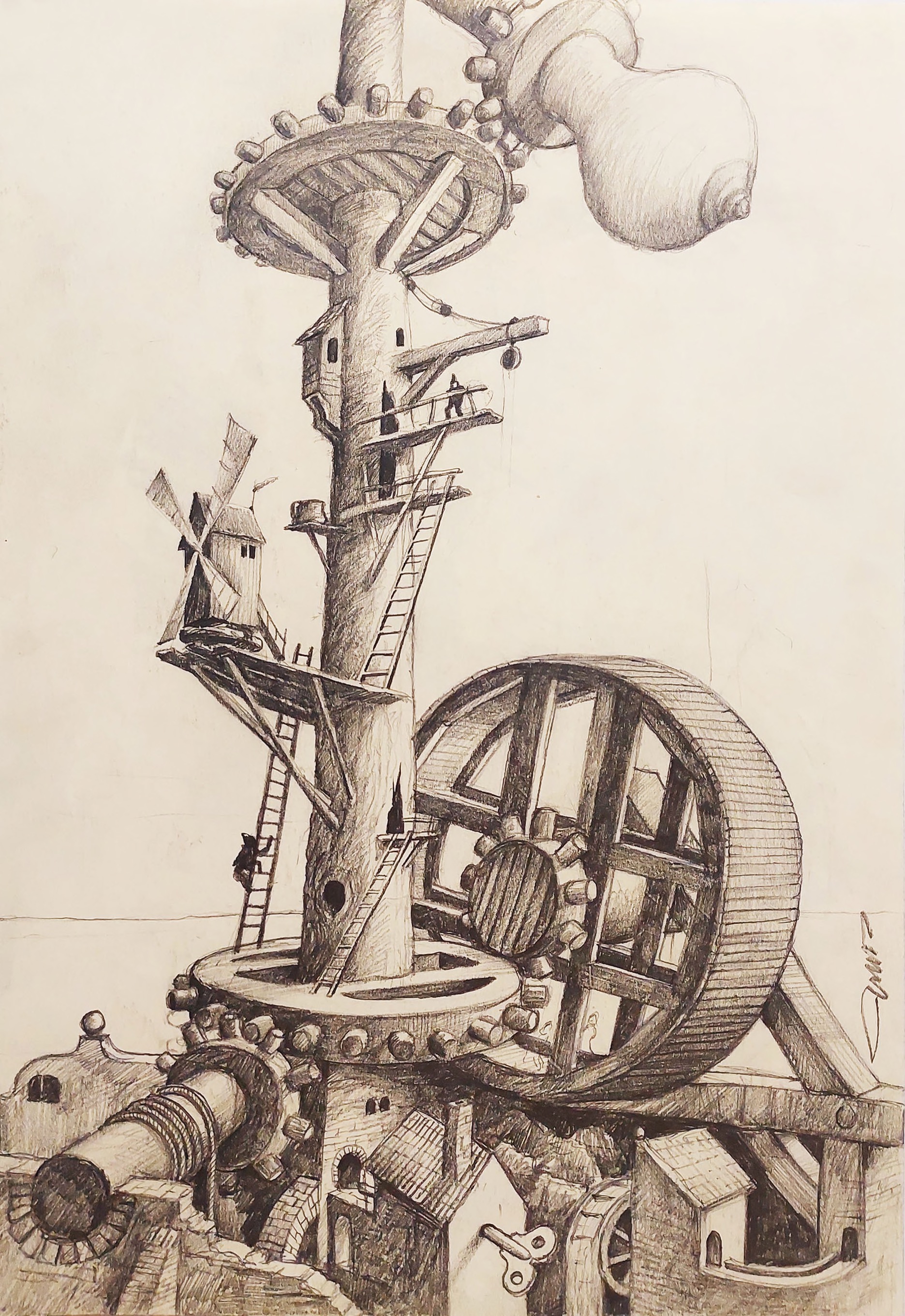 Równolegle zajmuje się malarstwem sztalugowym .Tematy prac to najczęściej żywioły wody i powierza, pejzaże surrealistyczne z motywami marynistycznymi.