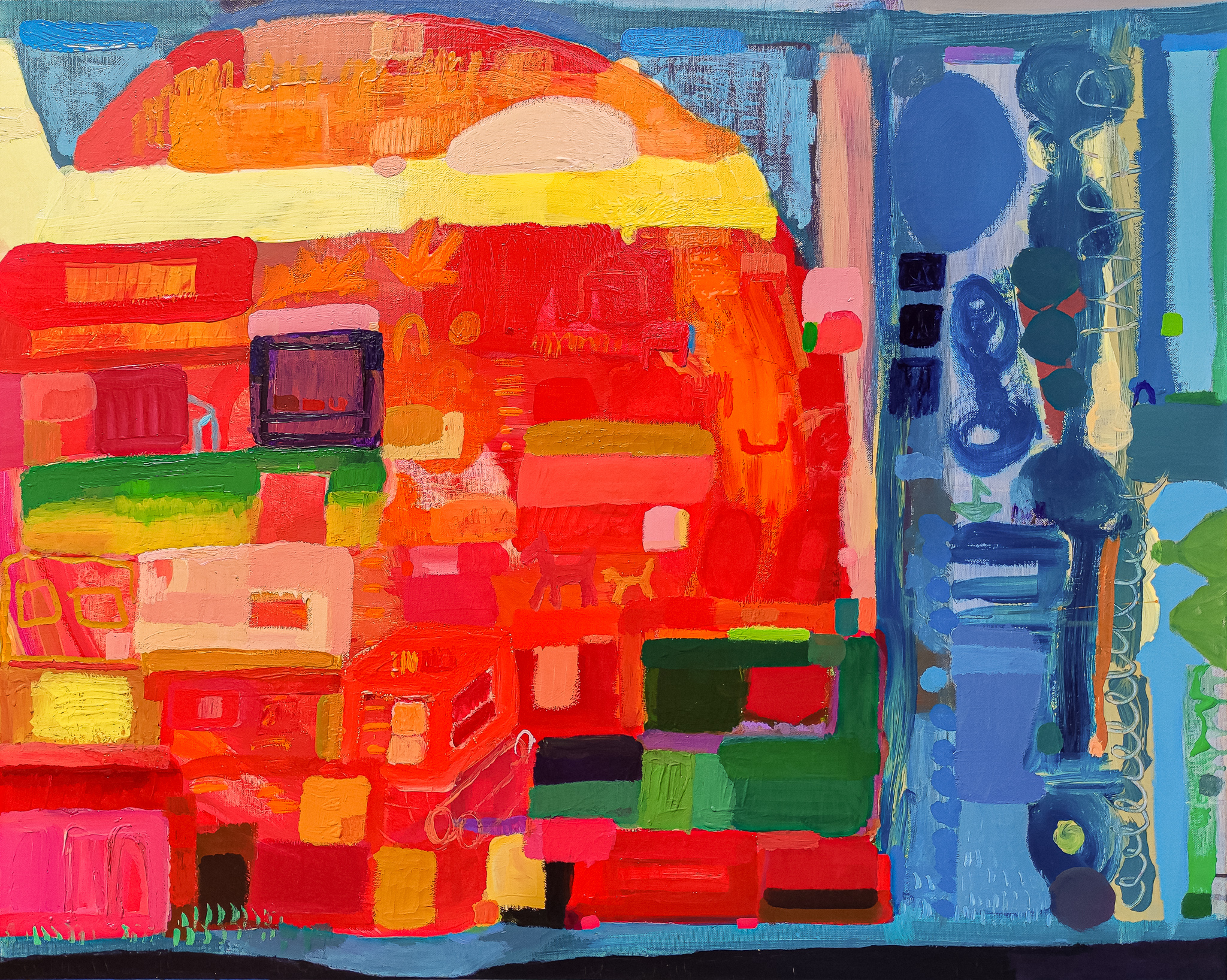gwasz, werniks, płótno, 80 x 100 cm,