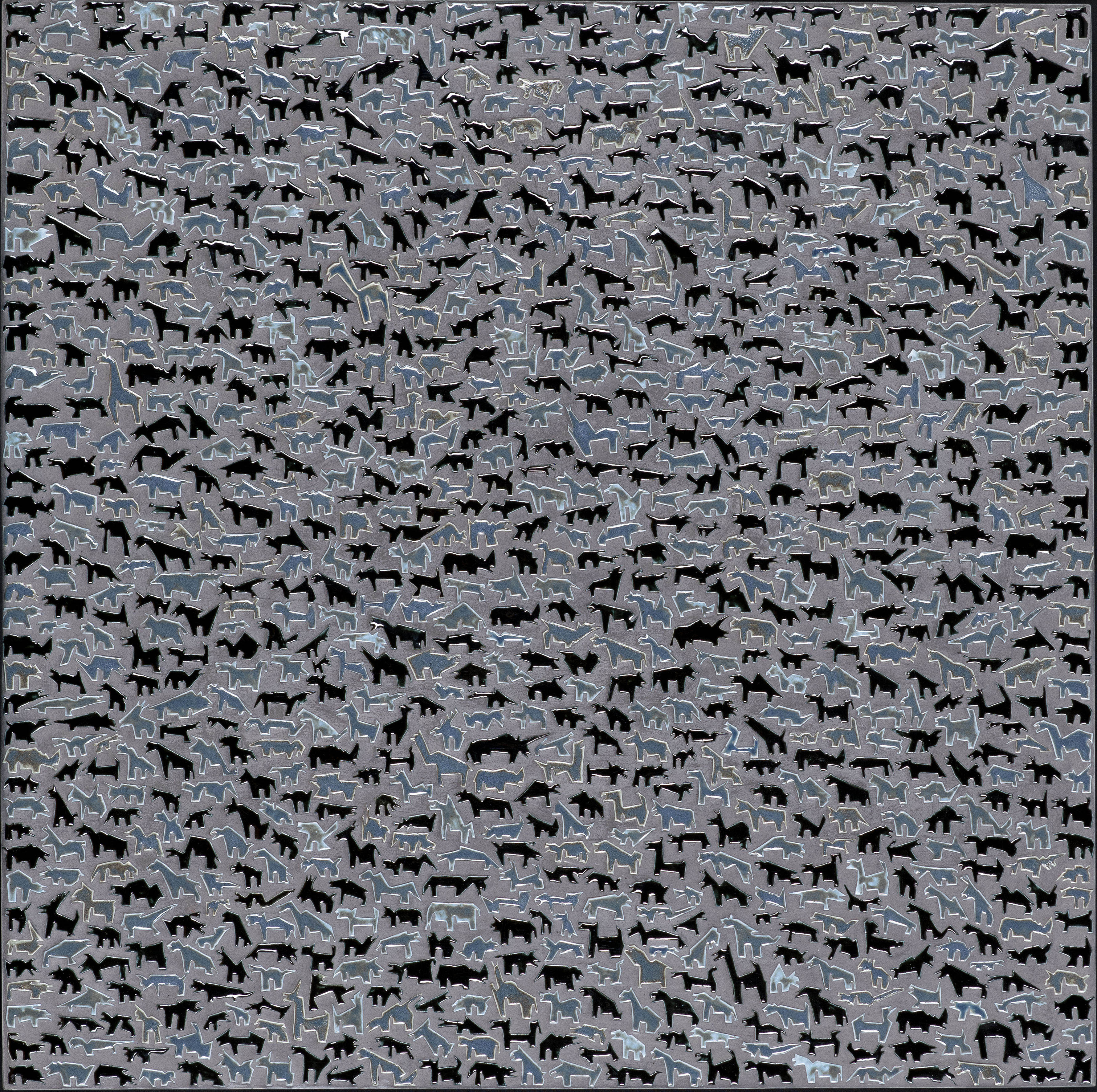 mozaika ceramiczna na desce, 60 x 60 x 4,5 cm, sygn.